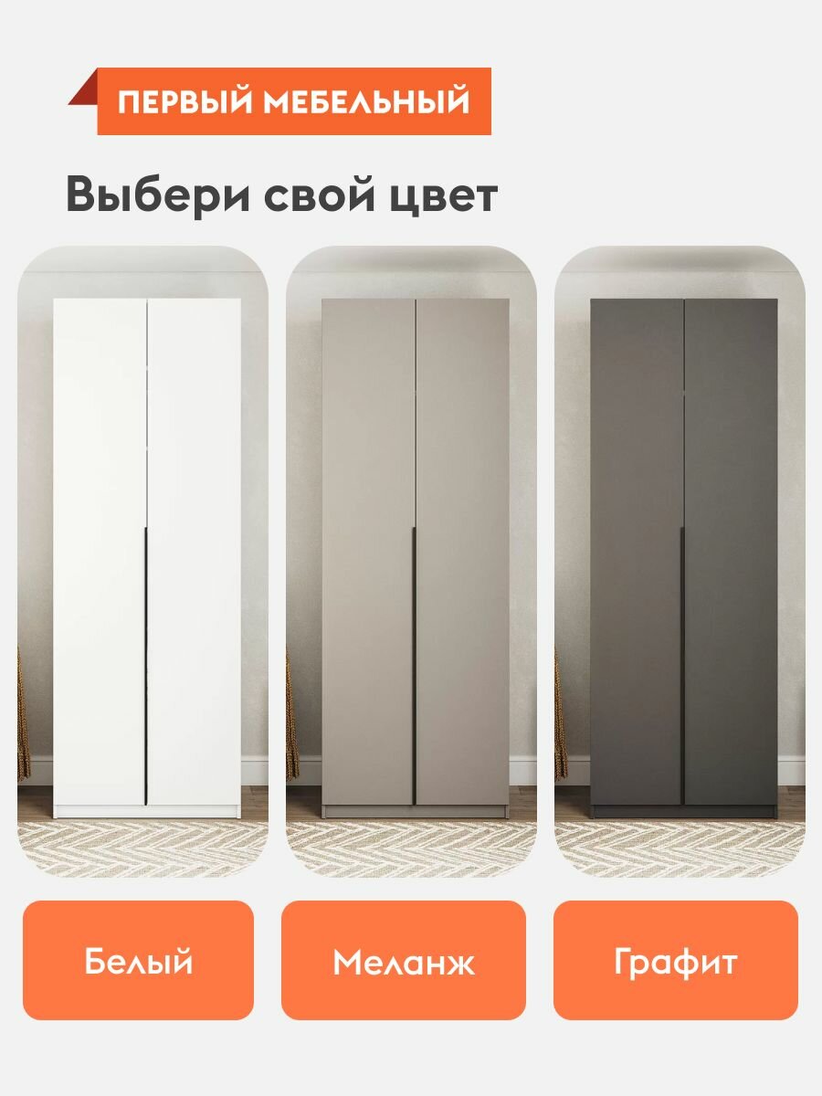 СохранитьШкаф распашной для одежды Арно со штангой, с полками, с доводчиками, 80.1х50.6х221.6 см, Графит интересное: