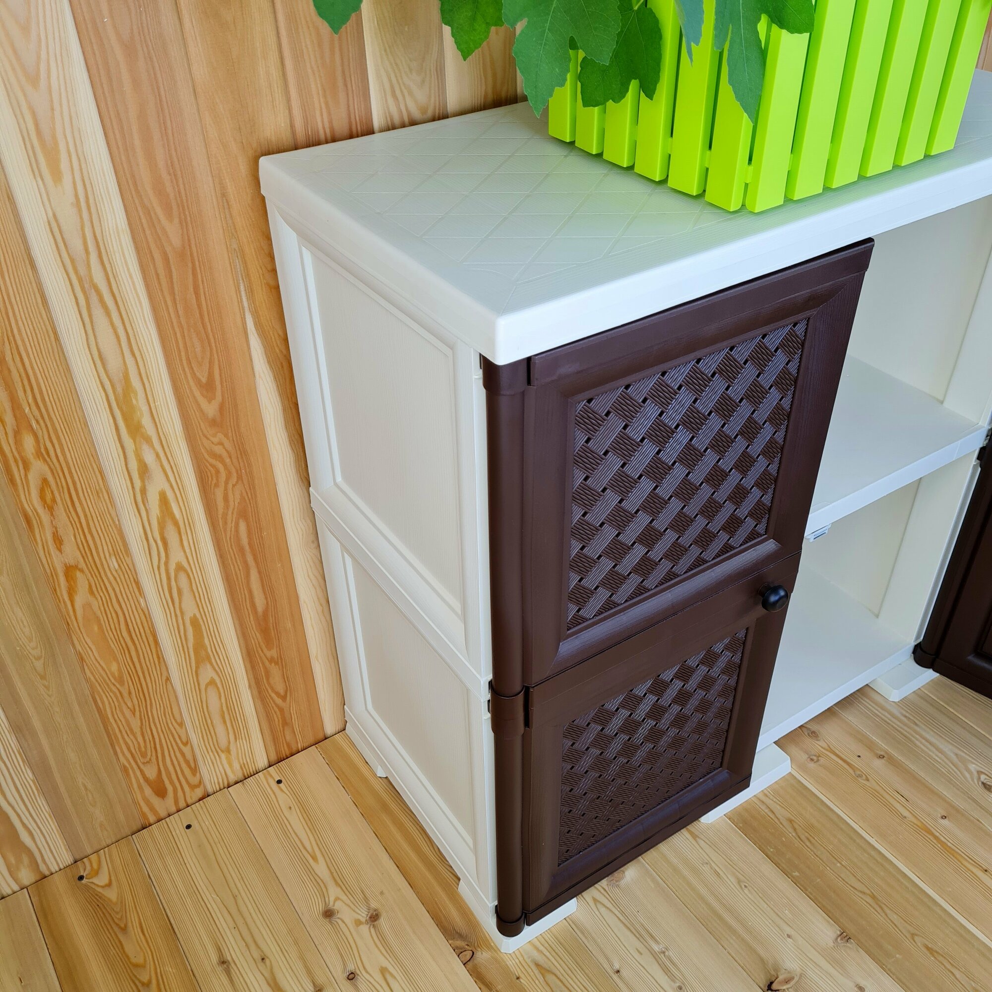 Купить Тумба-шкаф широкий, "УЮТ", 81х42х83,5 h, влагоустойчивый. 2 дверцы. Цвет: Бежевый с коричневыми дверцами. Арт: Э-023-БД