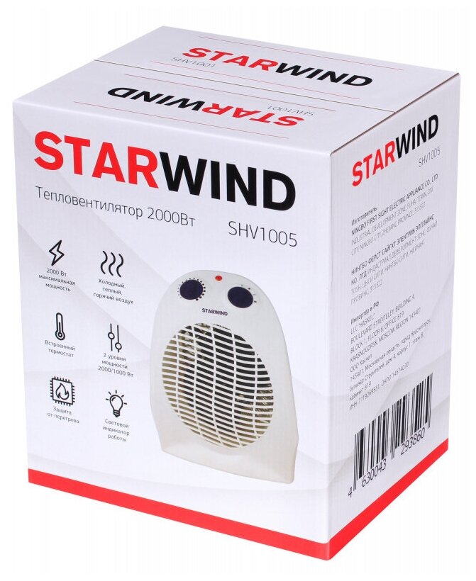 Тепловентилятор StarWind SHV1005, 2000Вт, с термостатом, 2 режима