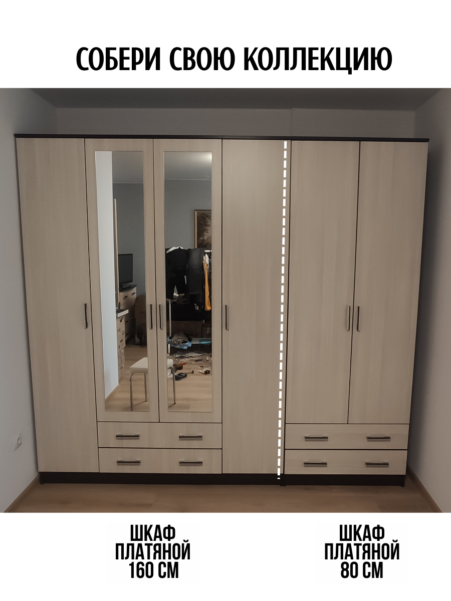 СохранитьШкаф распашной с зеркалом Квадро, ширина 160 см, цвет ясень шимо светлый/темный, ЛДСП интересное:
