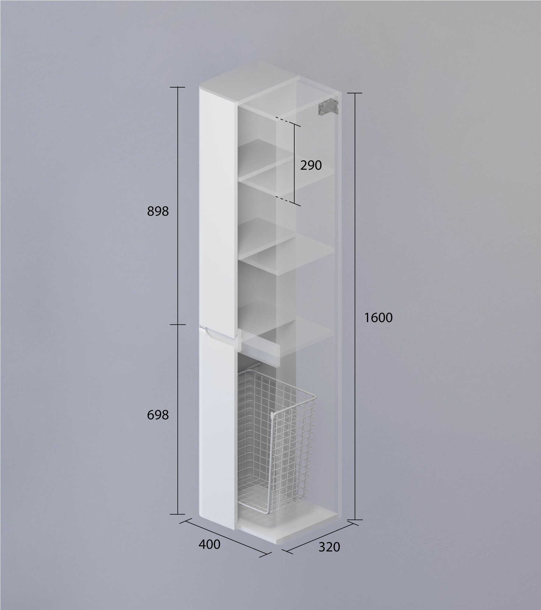 Шкаф пенал для ванной с корзиной для белья подвесной аквакрафт Vita, правый, белый