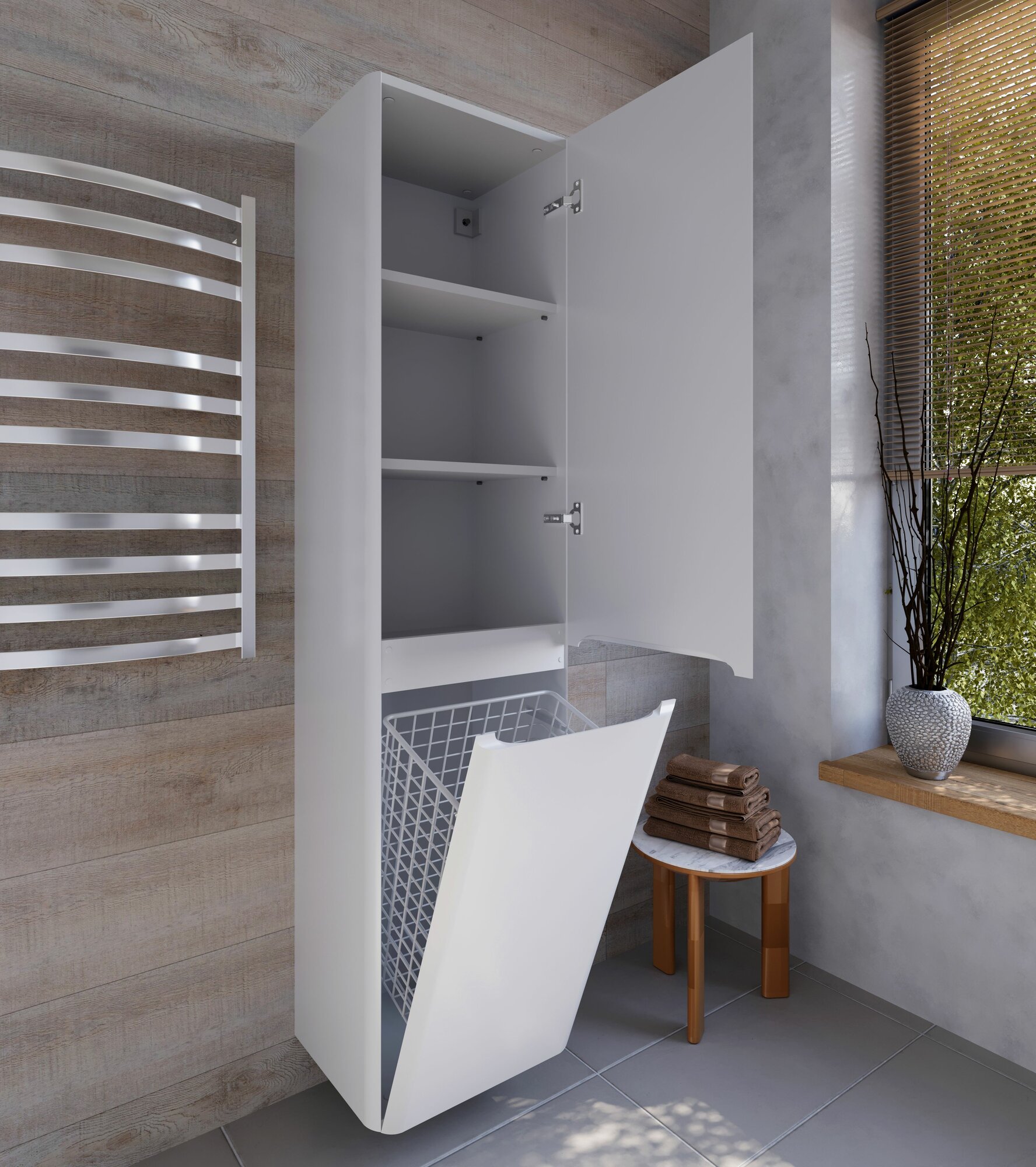 Купить Шкаф пенал для ванной с корзиной для белья подвесной аквакрафт Vita, правый, белый