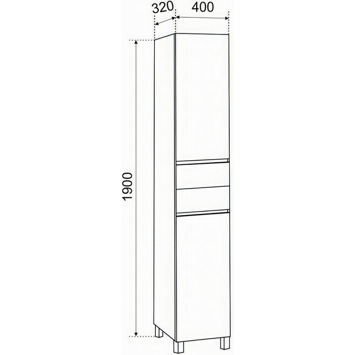 Купить Пенал Emmy "Джерси 40" для ванной комнаты, 2 ящика, левый, 190х40х32 см, белый, МДФ
