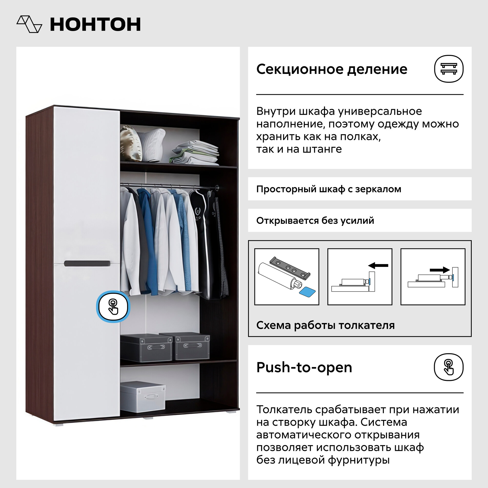 Шкаф для одежды с зеркалом Нонтон Ким, белый глянец / венге, 150 см интересное: