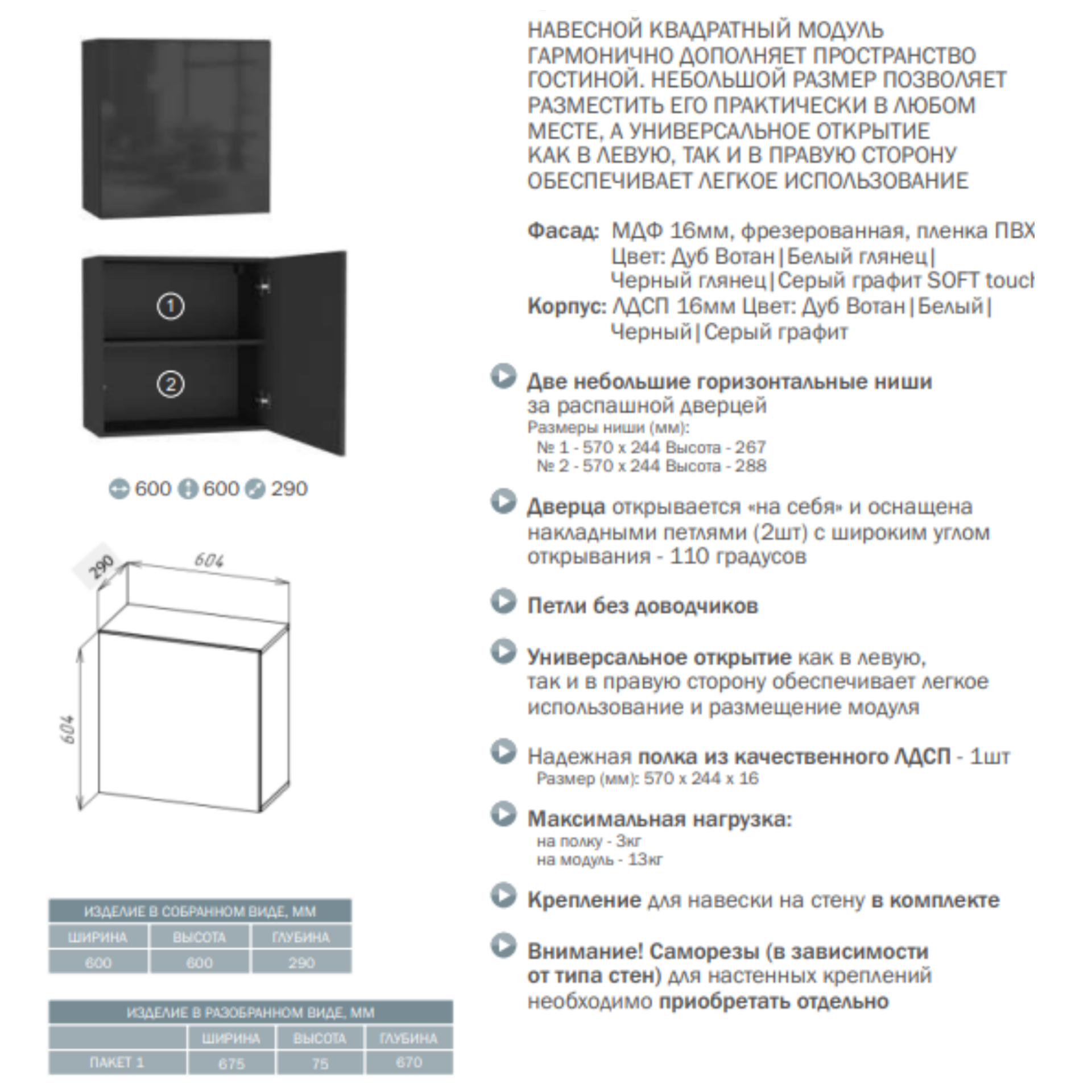 POINT ТИП-60 шкаф навесной, 60 х 60 х 29 см, МДФ/ЛДСП, Серый Графит интересное:
