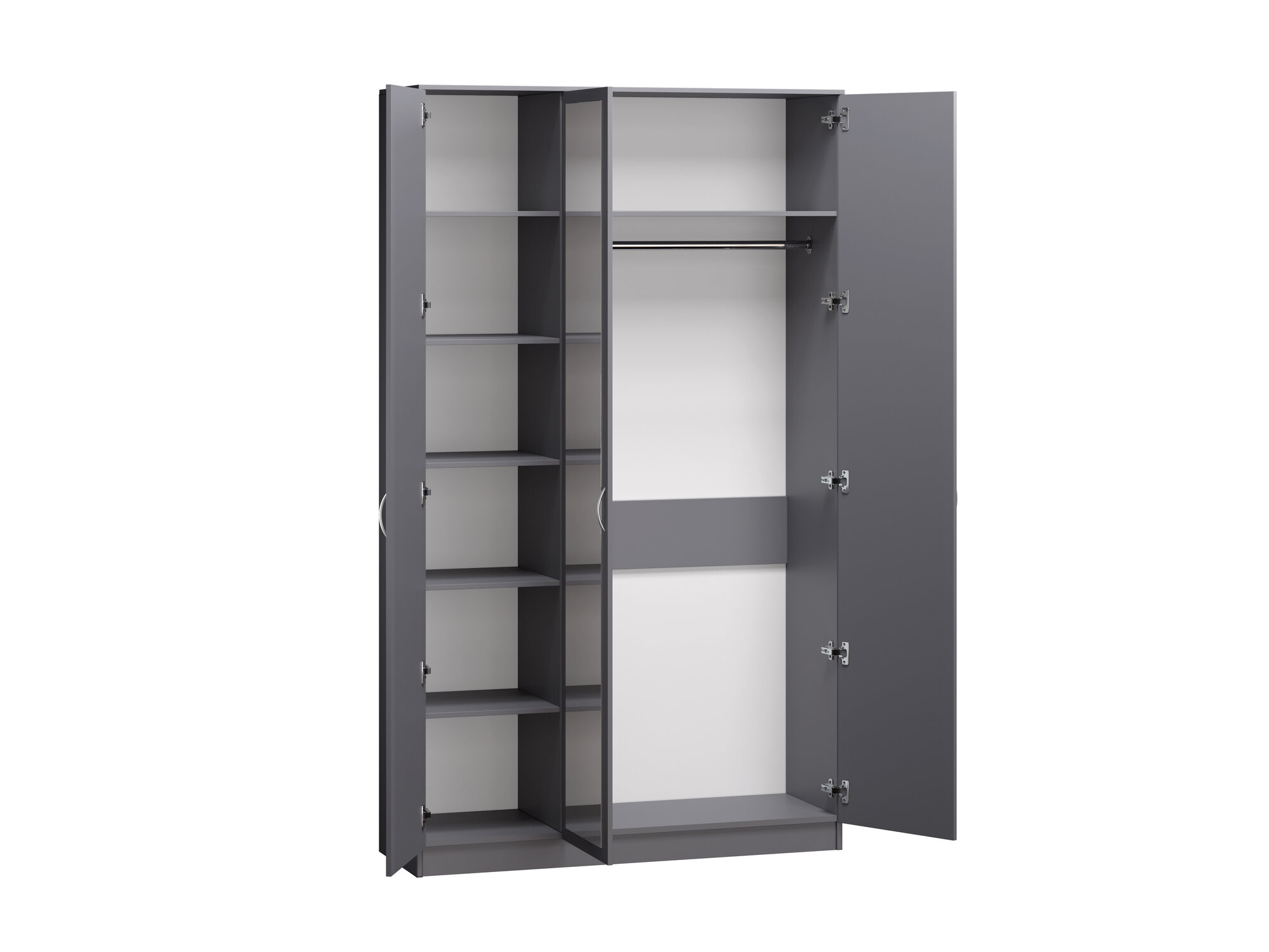 Шкаф распашной Лайт-3 Графит для одежды трёхдверный 130*210*50 Мегамебель