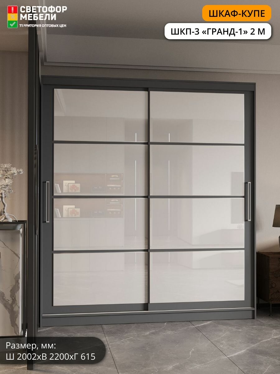 Купить Шкаф-купе Мебельный рай ШКП 3 Гранд 1 без зеркал 2002х2200х615, Графит/Лакобель белый