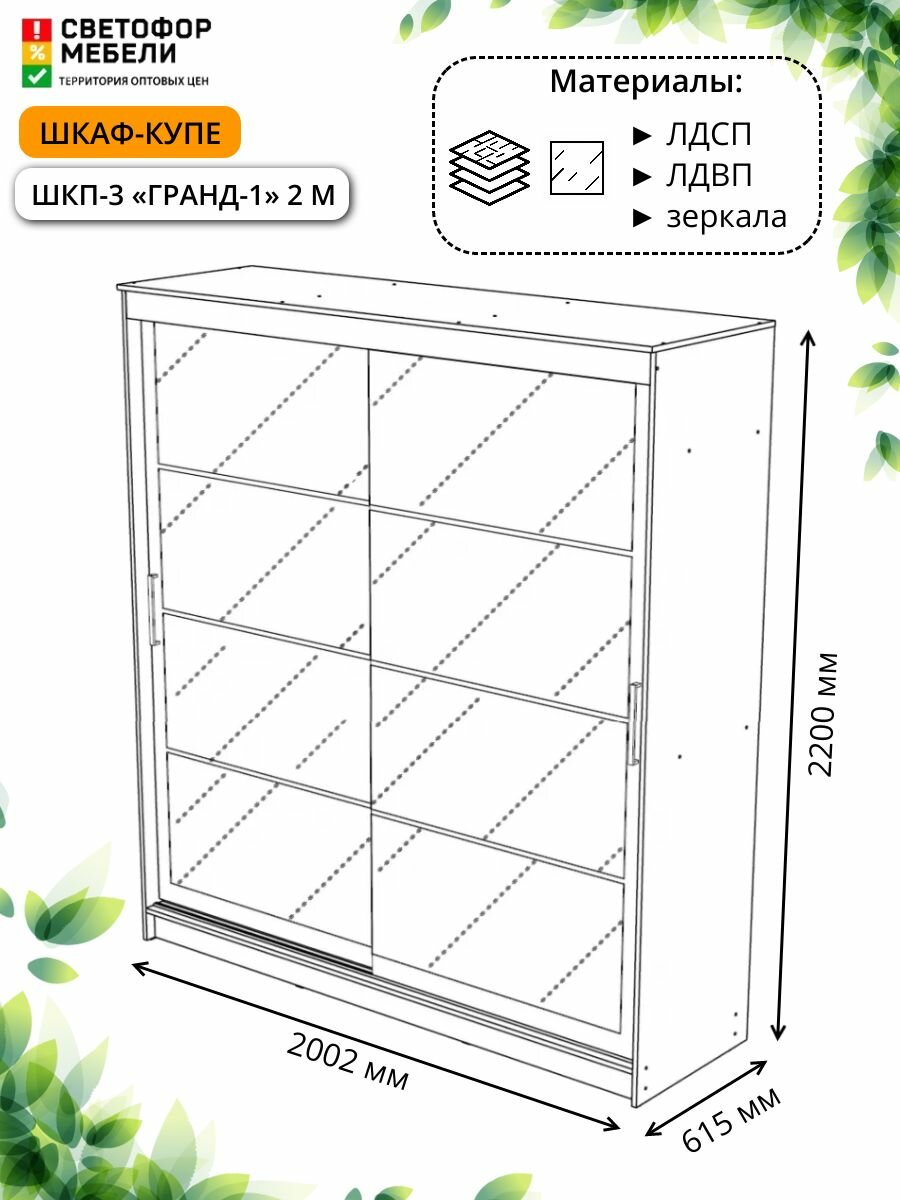 СохранитьШкаф-купе Мебельный рай ШКП 3 Гранд 1 с 2-мя зеркалами 2002х2200х615, Графит/Дуб вотан интересное: