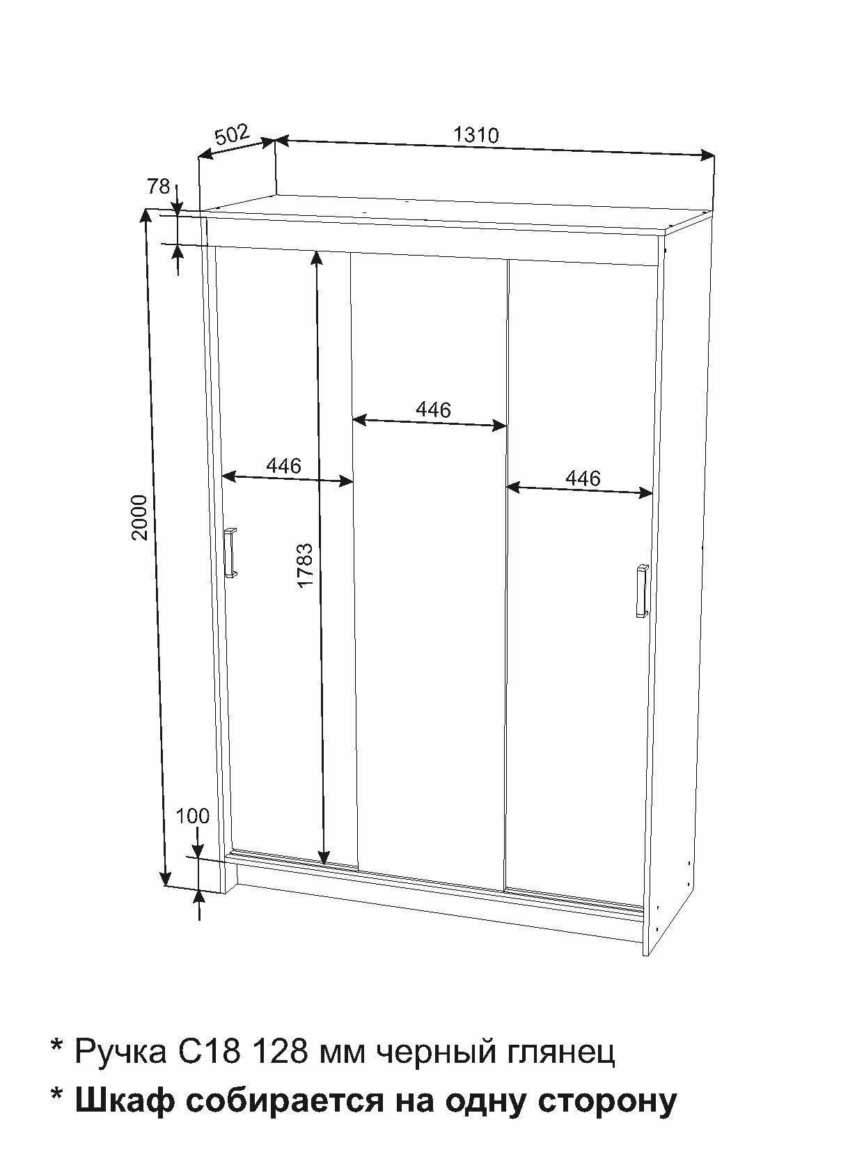 Шкаф-купе Мебельный рай "ТАЙМ-2", ЛДСП, 131 см x 200 см x 50,2 см