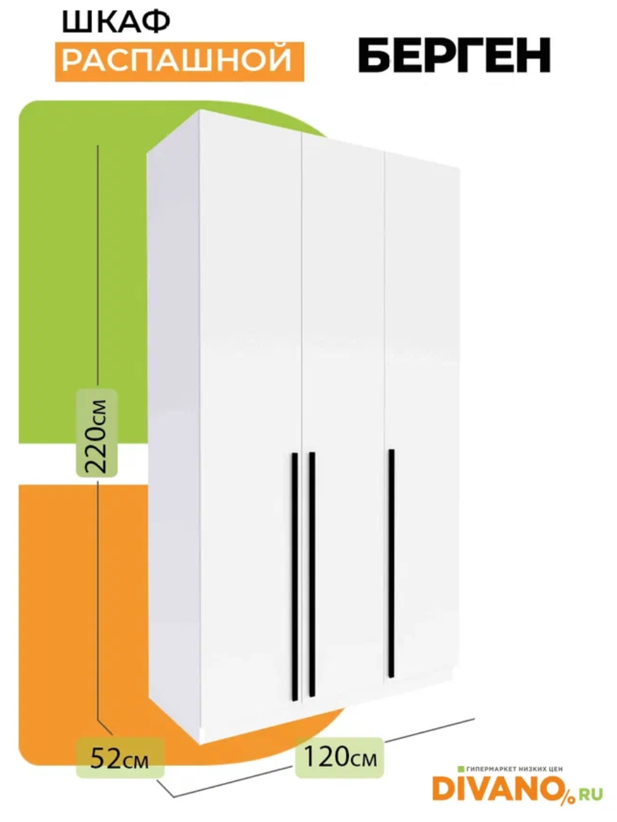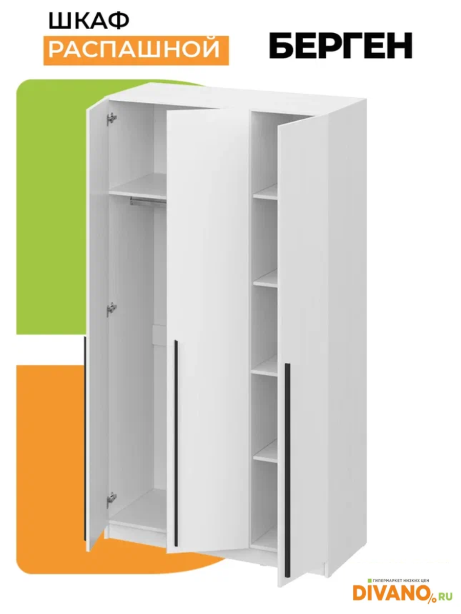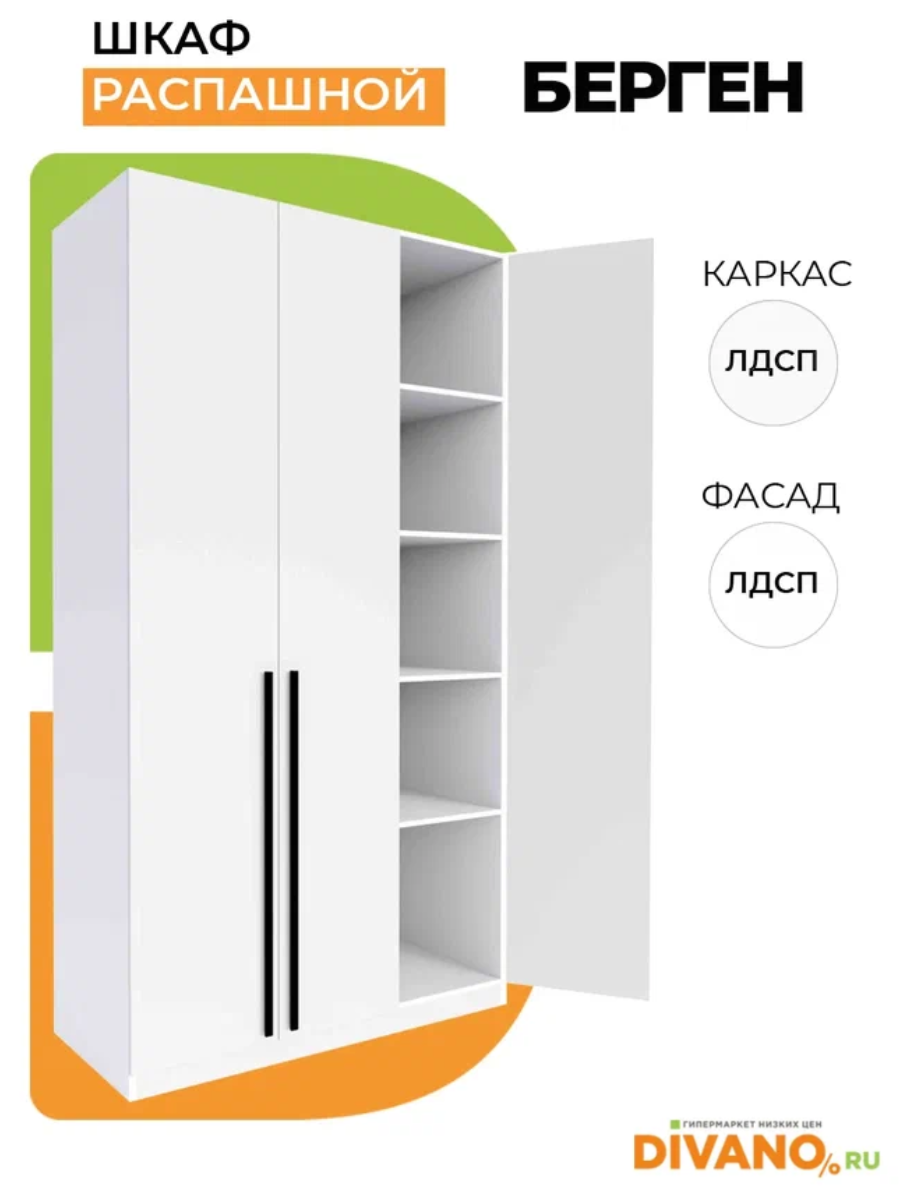 Шкаф для одежды распашной Нонтон Луас, 120 см, 7 полок и штанга, белый глянец
