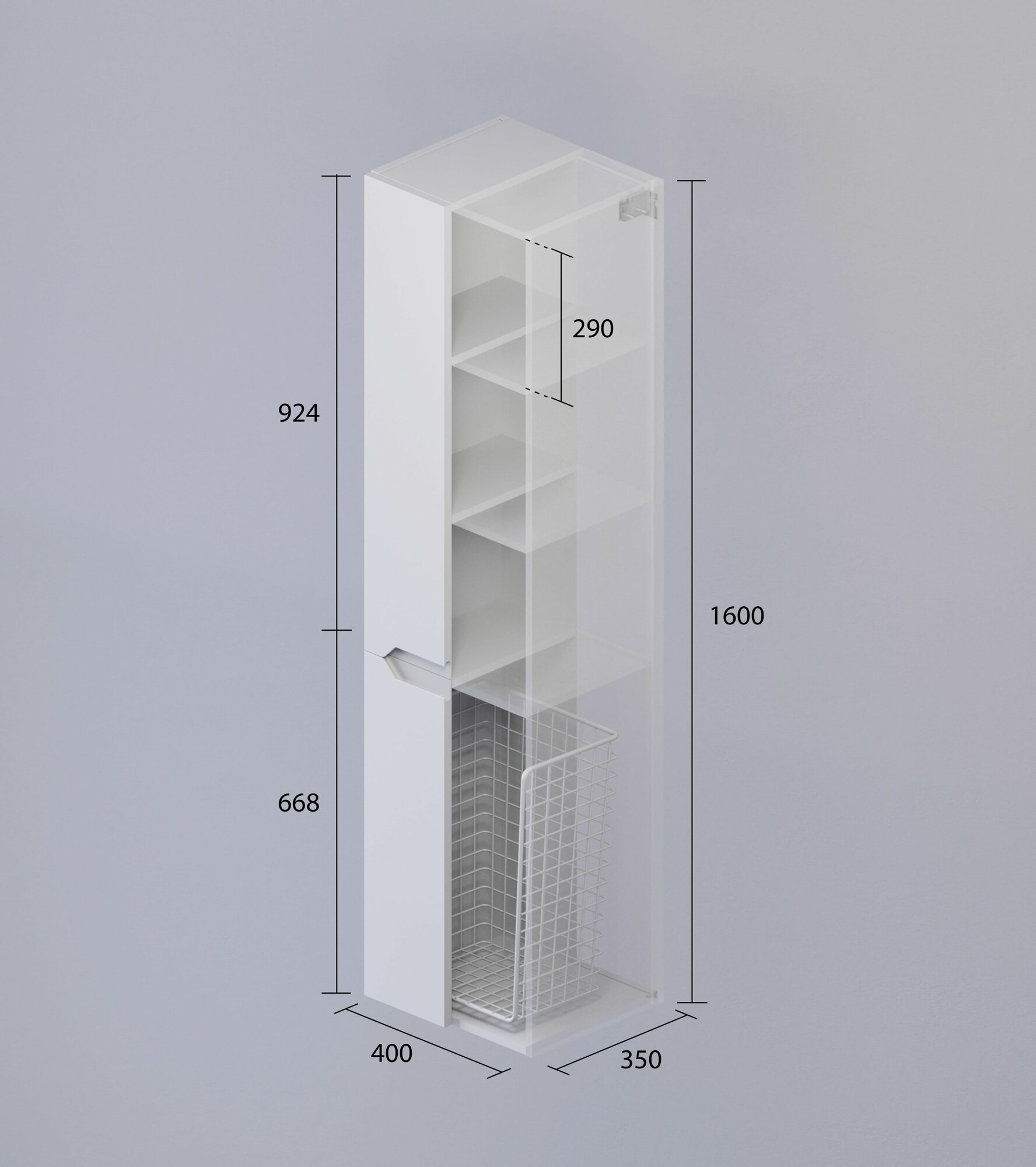 Купить Шкаф пенал для ванной с откидной корзиной для белья подвесной аквакрафт Violetta, левый, белый