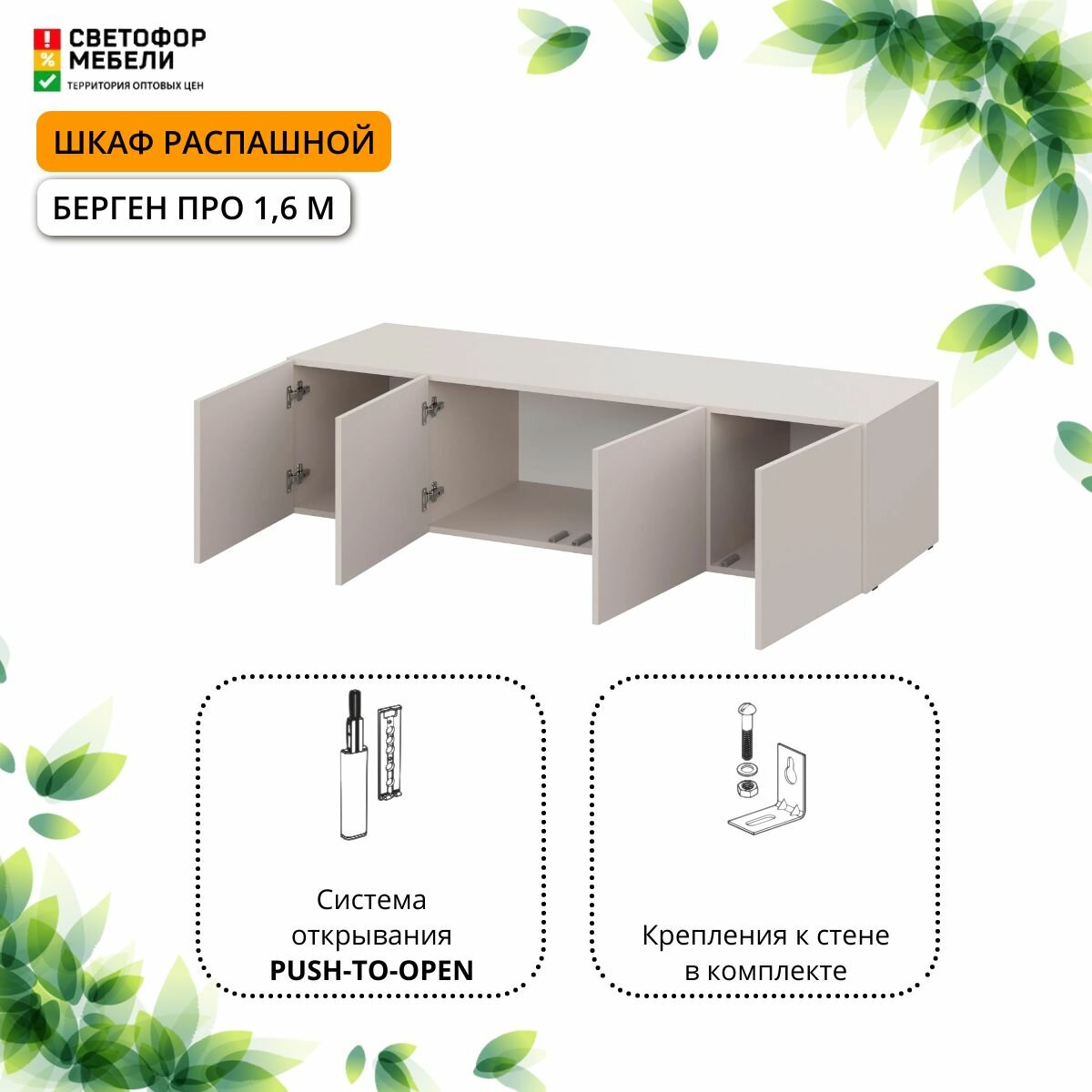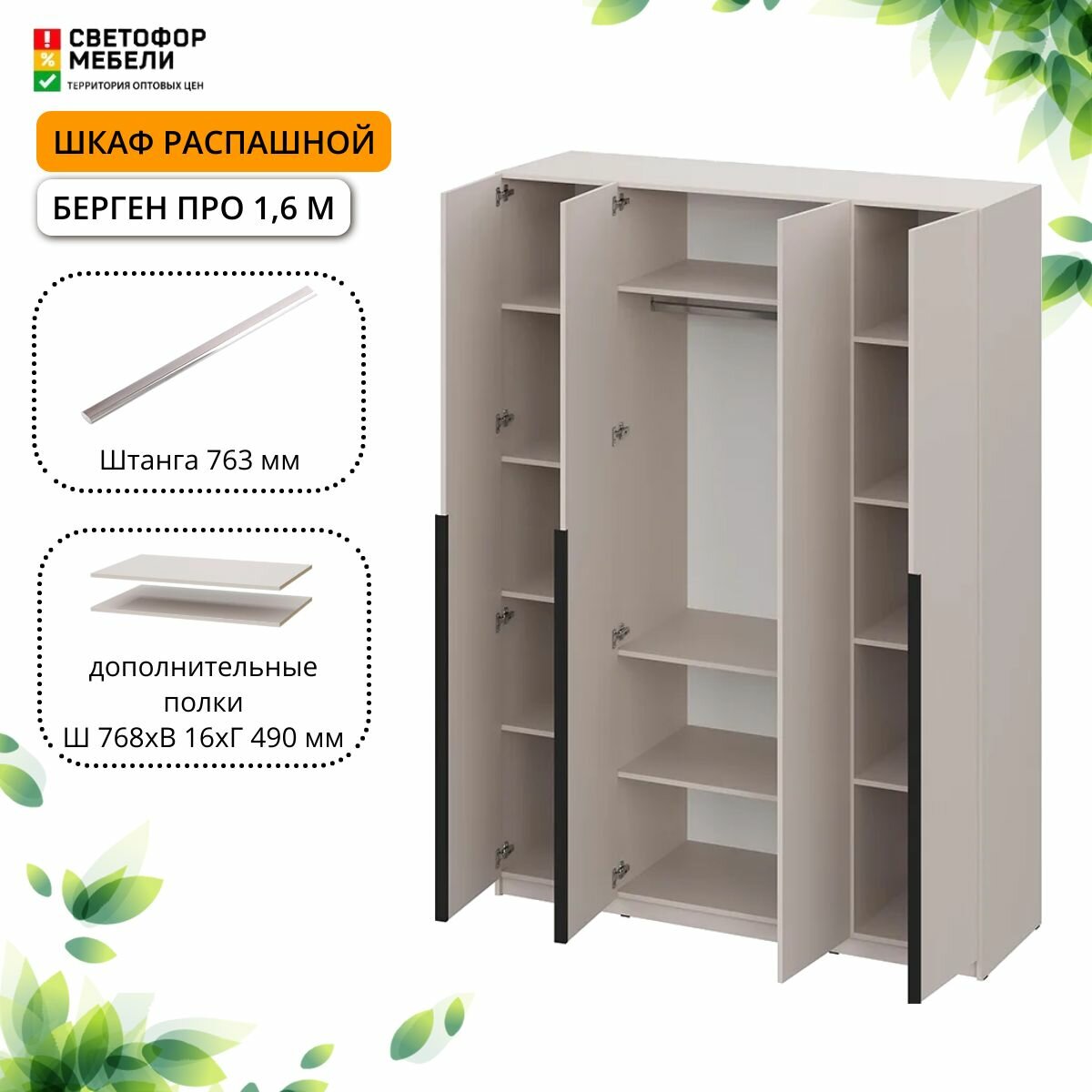Шкаф распашной Мебельный рай Берген Про 1.6 м с антресолью, штангой и полками 1600х2596х506, Кашемир интересное: