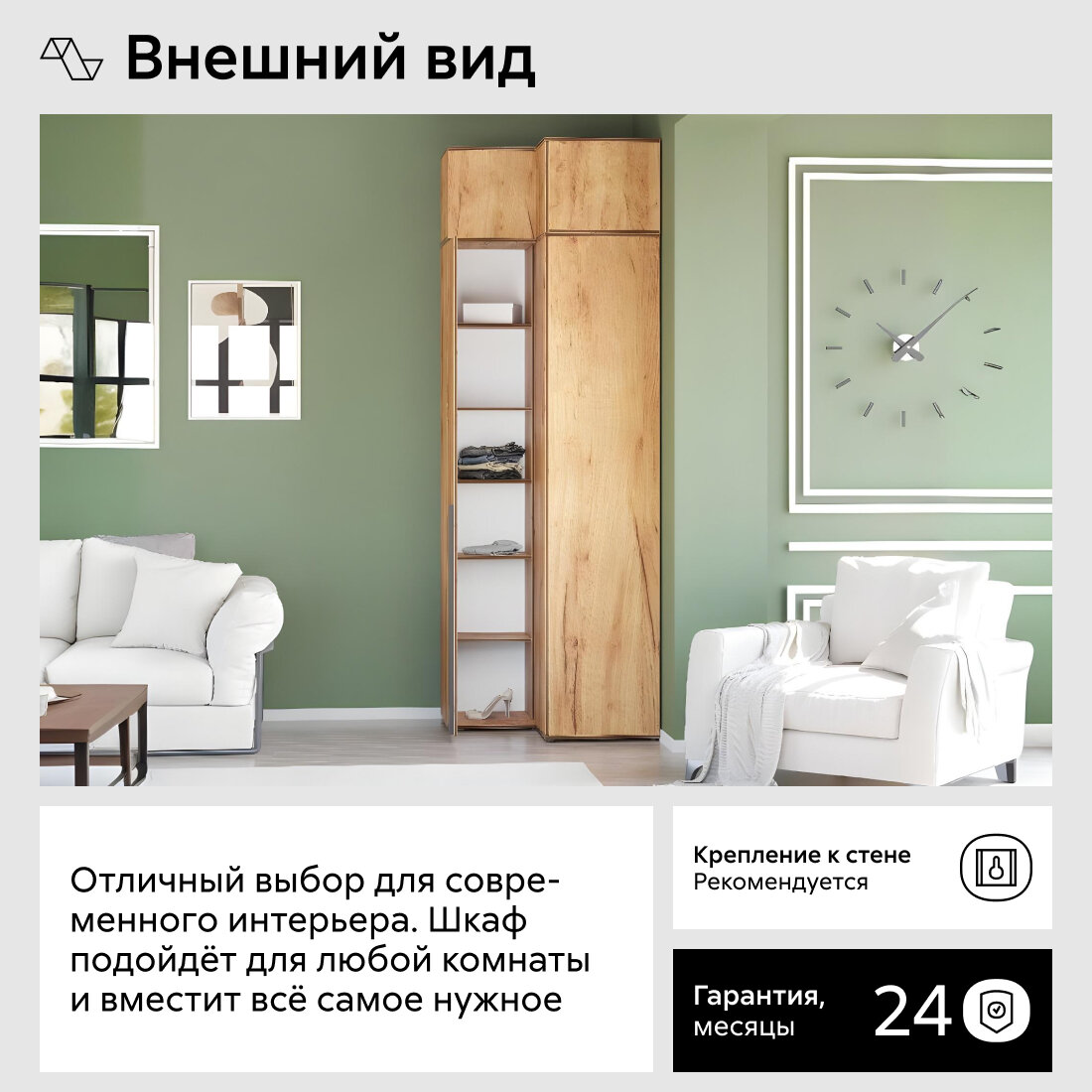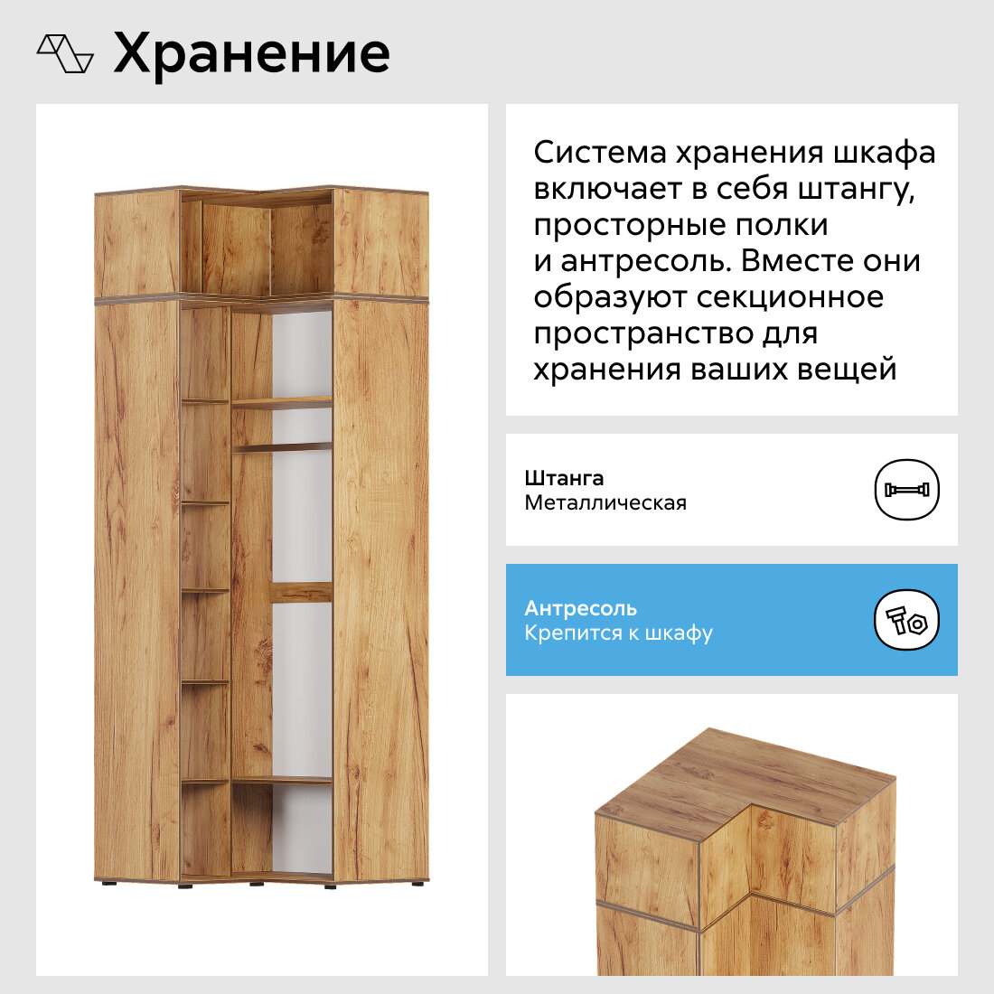 Шкаф для одежды угловой с антресолью Нонтон Норд, дуб крафт, 90 см интересное: