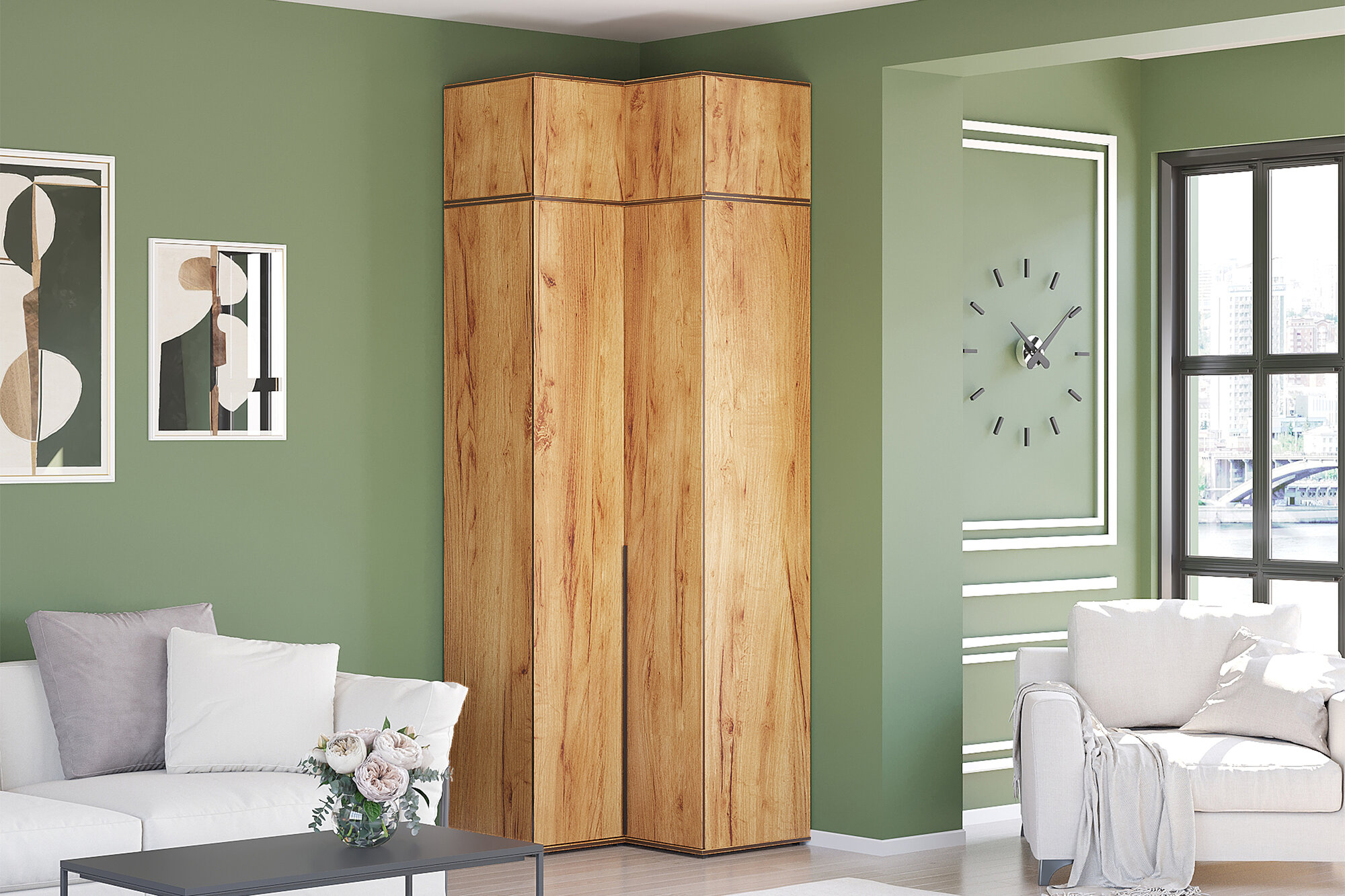 Купить Шкаф для одежды угловой с антресолью Нонтон Норд, дуб крафт, 90 см