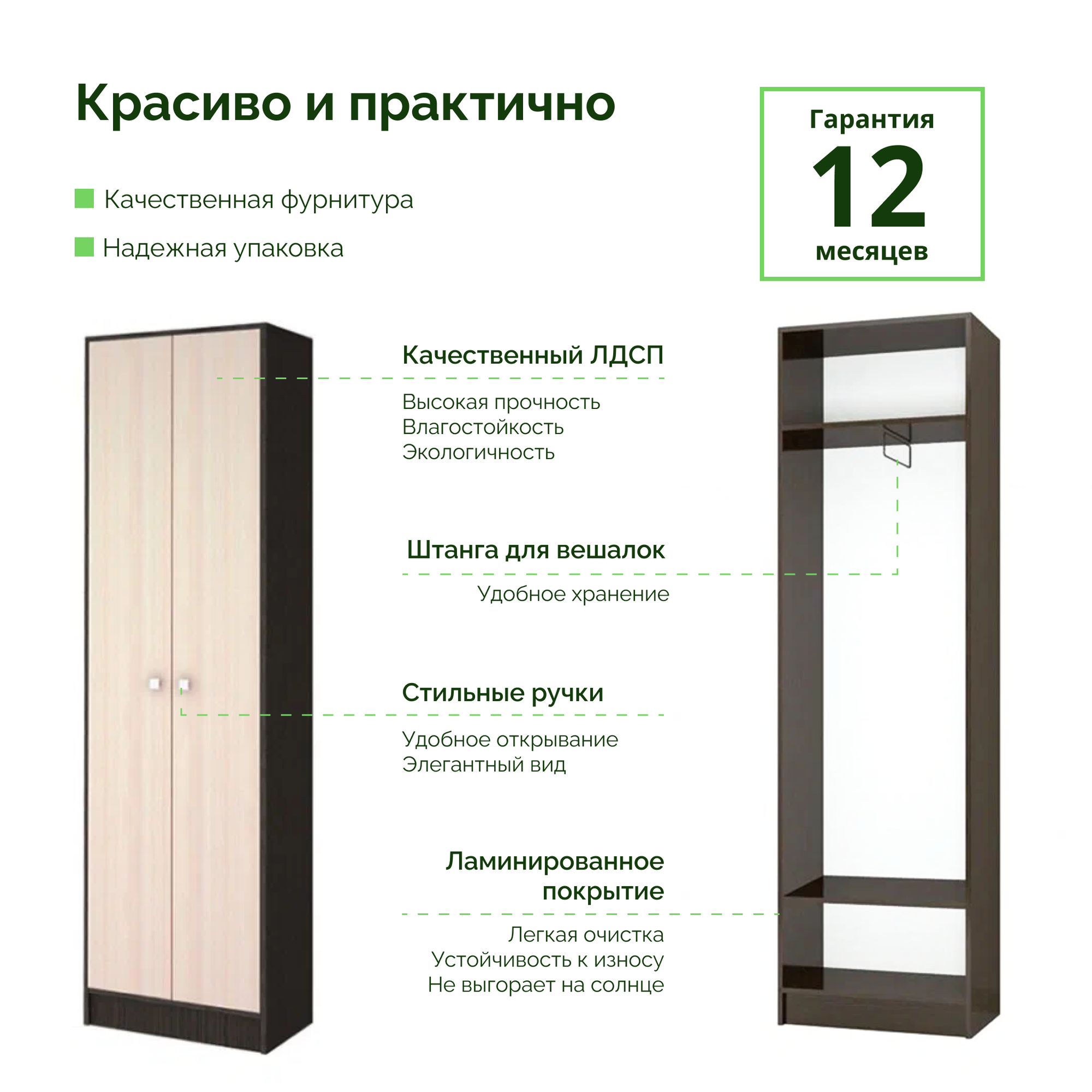 Двухстворчатый Шкаф для одежды в прихожую, спальню или гостиную 60см венге/дуб молочный - ТК0100 интересное: