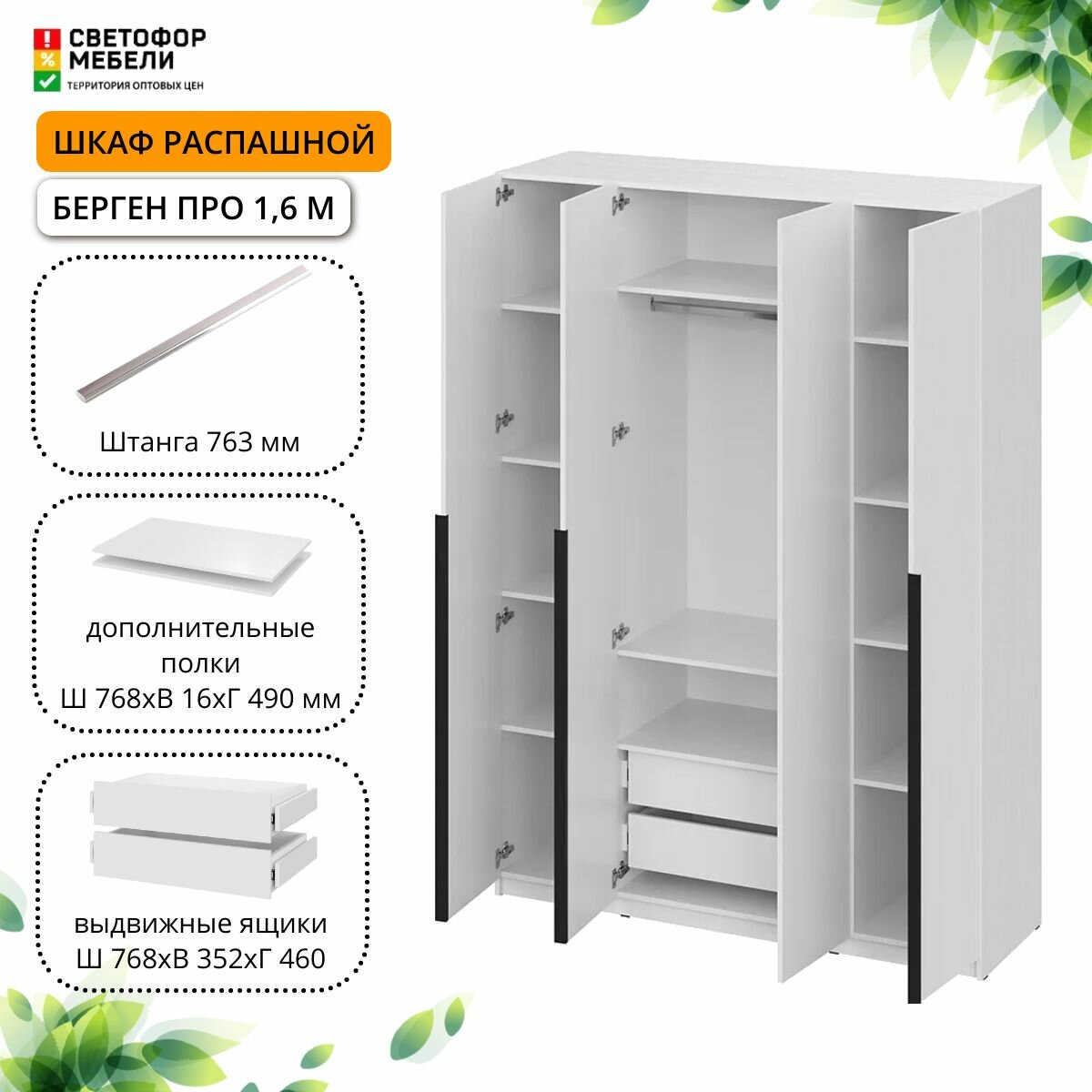 Ниже Вы можете прочитать отзывы на Шкаф распашной Мебельный рай Берген Про 1.6 м с антресолью, штангой, ящиками и полками 1600х2596х506, Белое дерево, ознакомится с подробными характеристиками, посмотреть интересные обзоры и фотографии на Шкаф распашной Мебельный рай Берген Про 1.6 м с антресолью, штангой, ящиками и полками 1600х2596х506, Белое дерево.