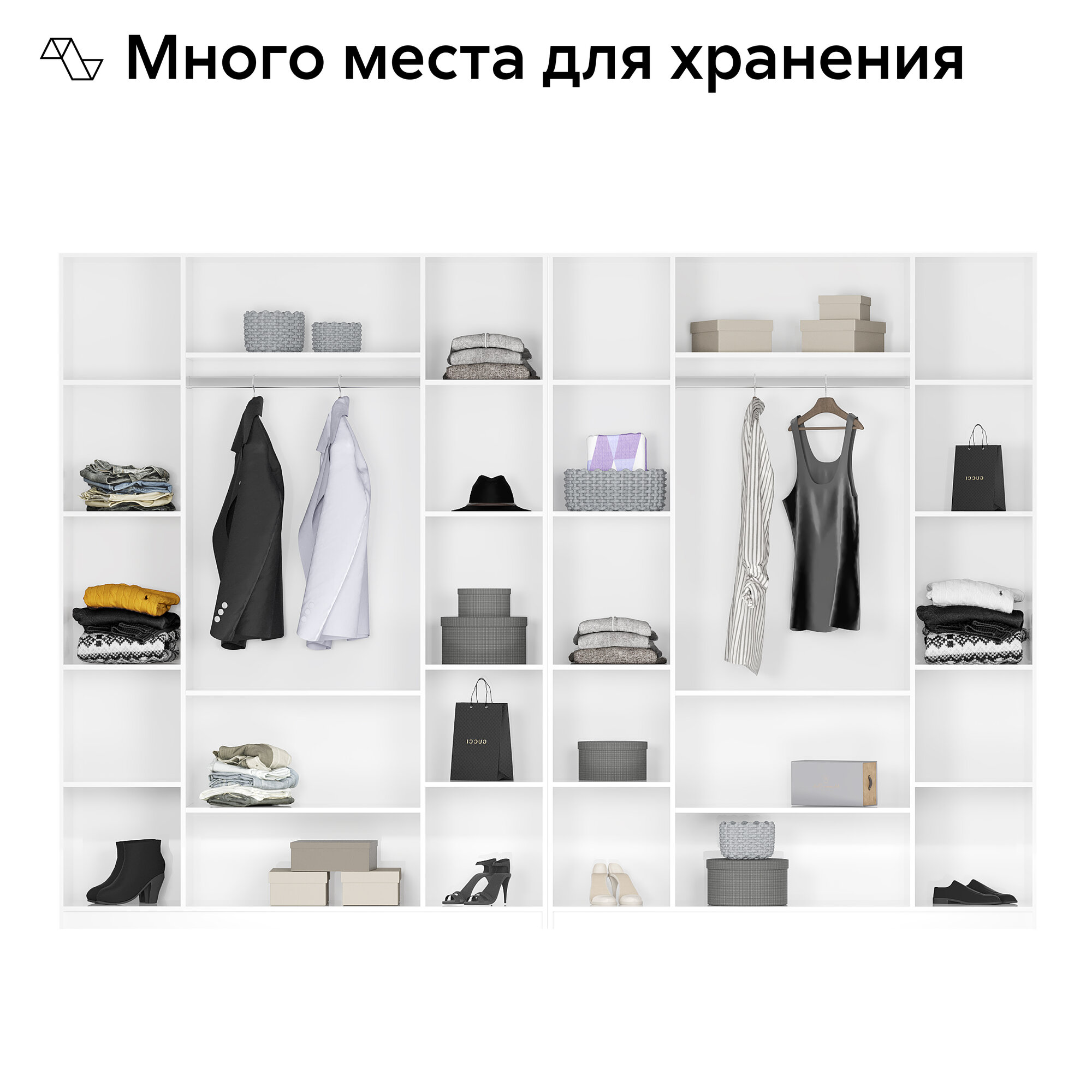 Шкаф для одежды распашной Нонтон Луас, 2 шт, 320 см, 24 полки, 1 штанга, 4 ящика, белый текстурный