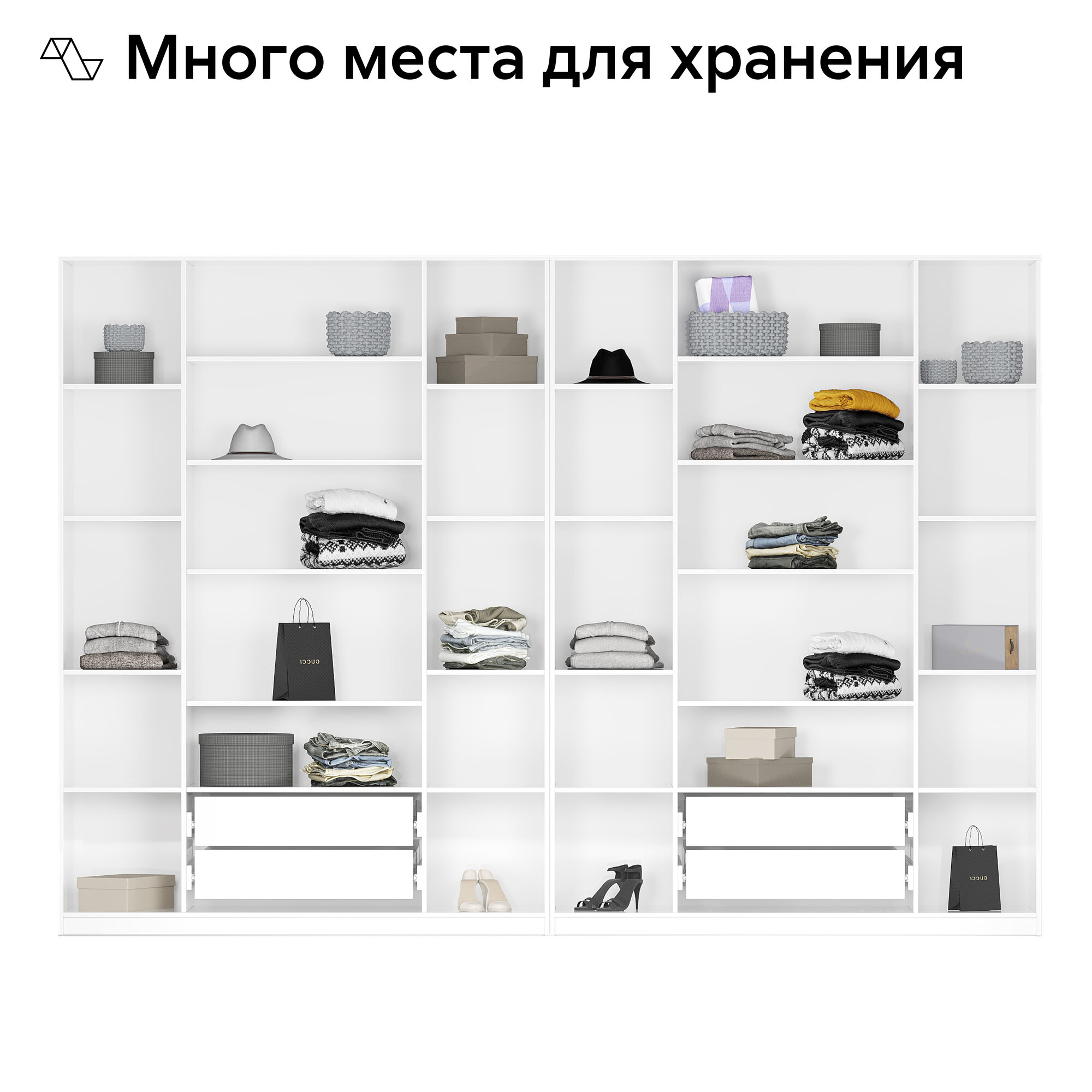 СохранитьШкаф для одежды распашной Нонтон Луас, 2 шт, 320 см, 26 полок и 4 ящика, белый текстурный интересное: