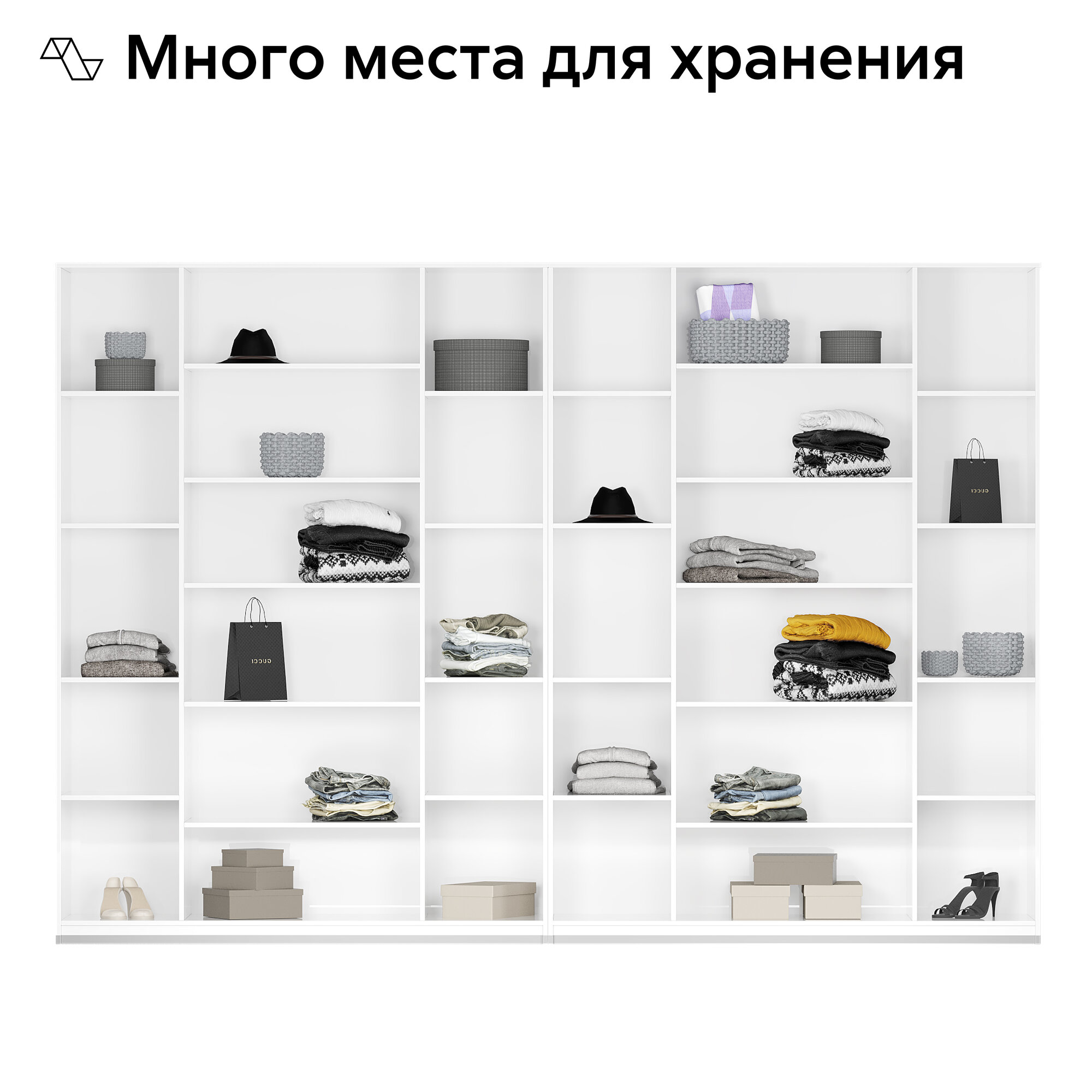 Шкаф для одежды распашной Нонтон Луас, 2 шт, 320 см, 24 полки, 1 штанга, 4 ящика, белый текстурный