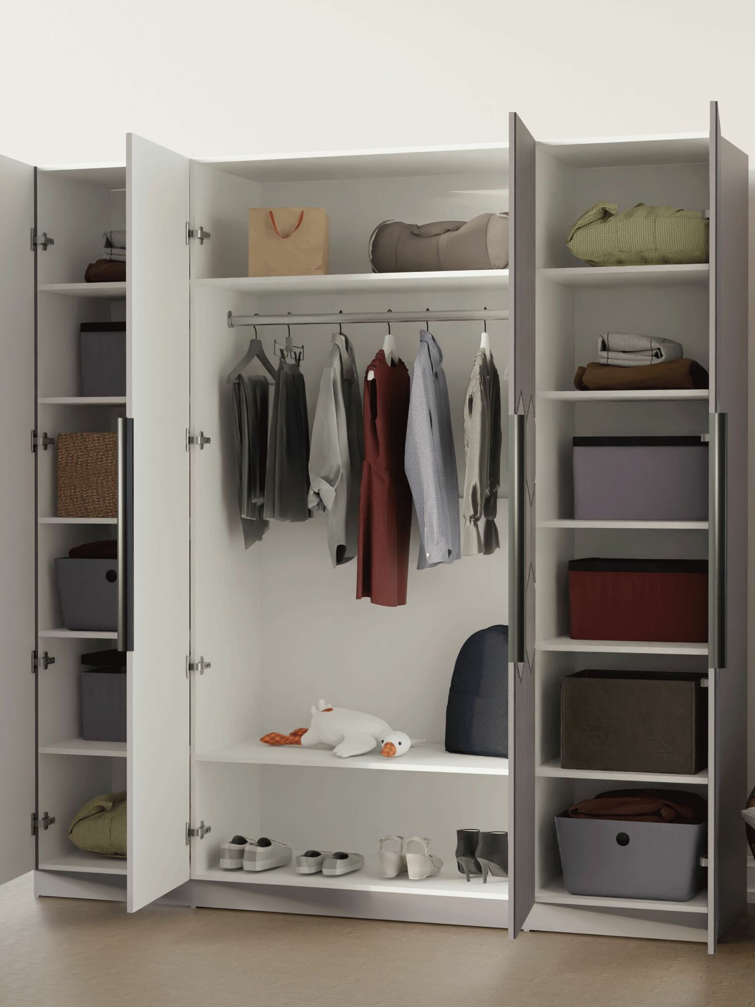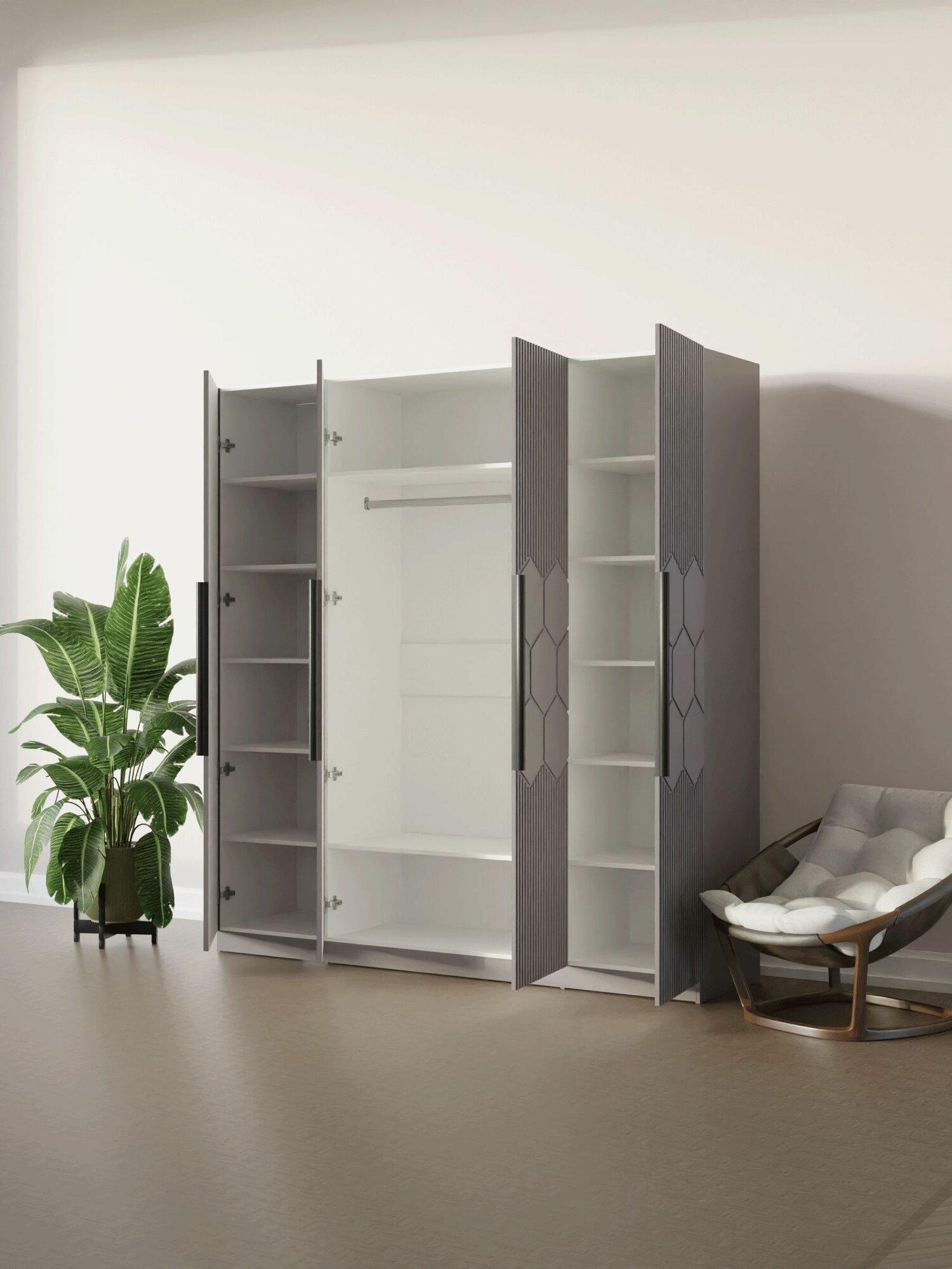 СохранитьLAERA Шкаф для одежды распашной четырехдверный с полками риолит соты интересное: