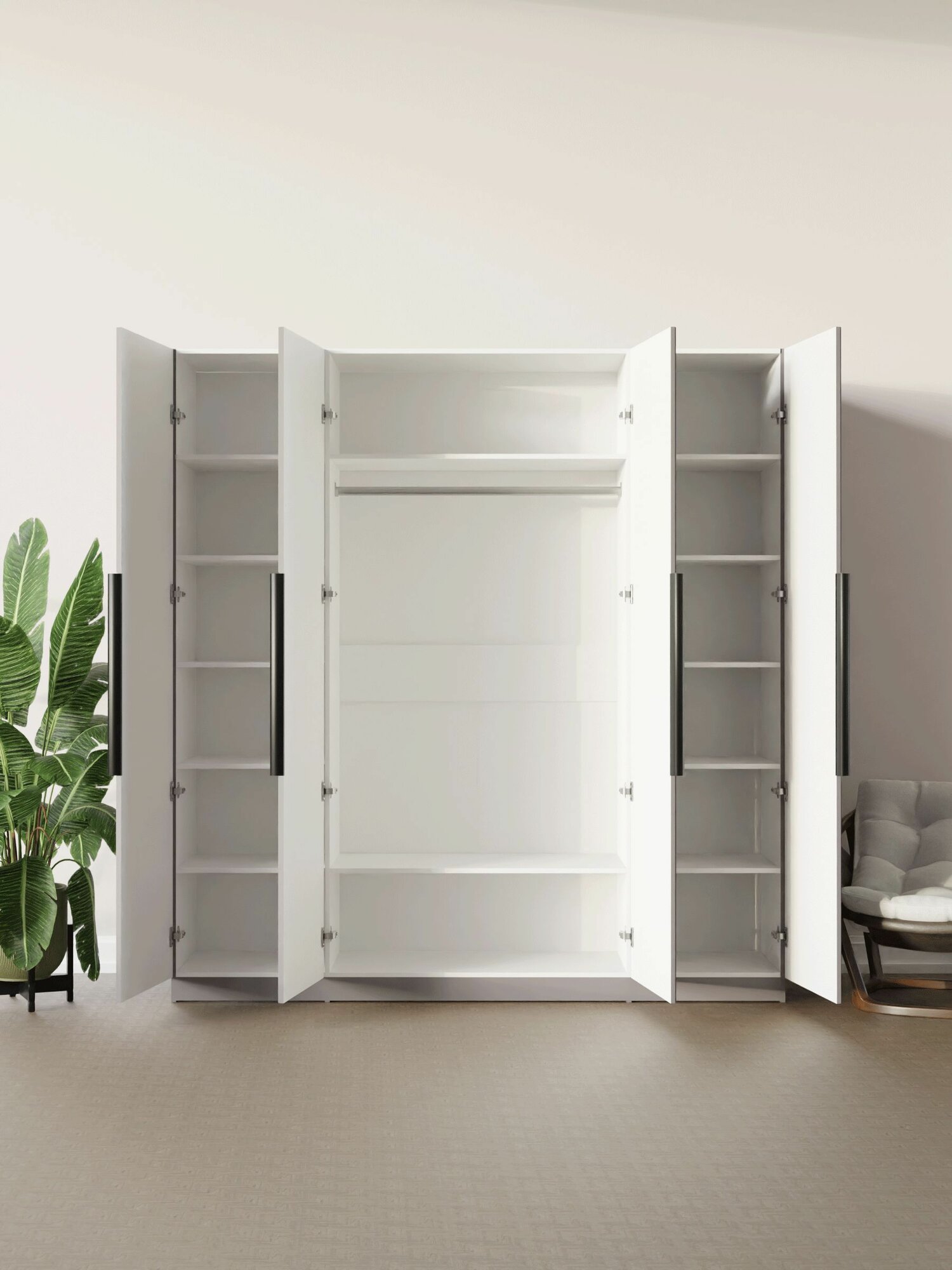 LAERA Шкаф для одежды распашной четырехдверный с полками белый соты