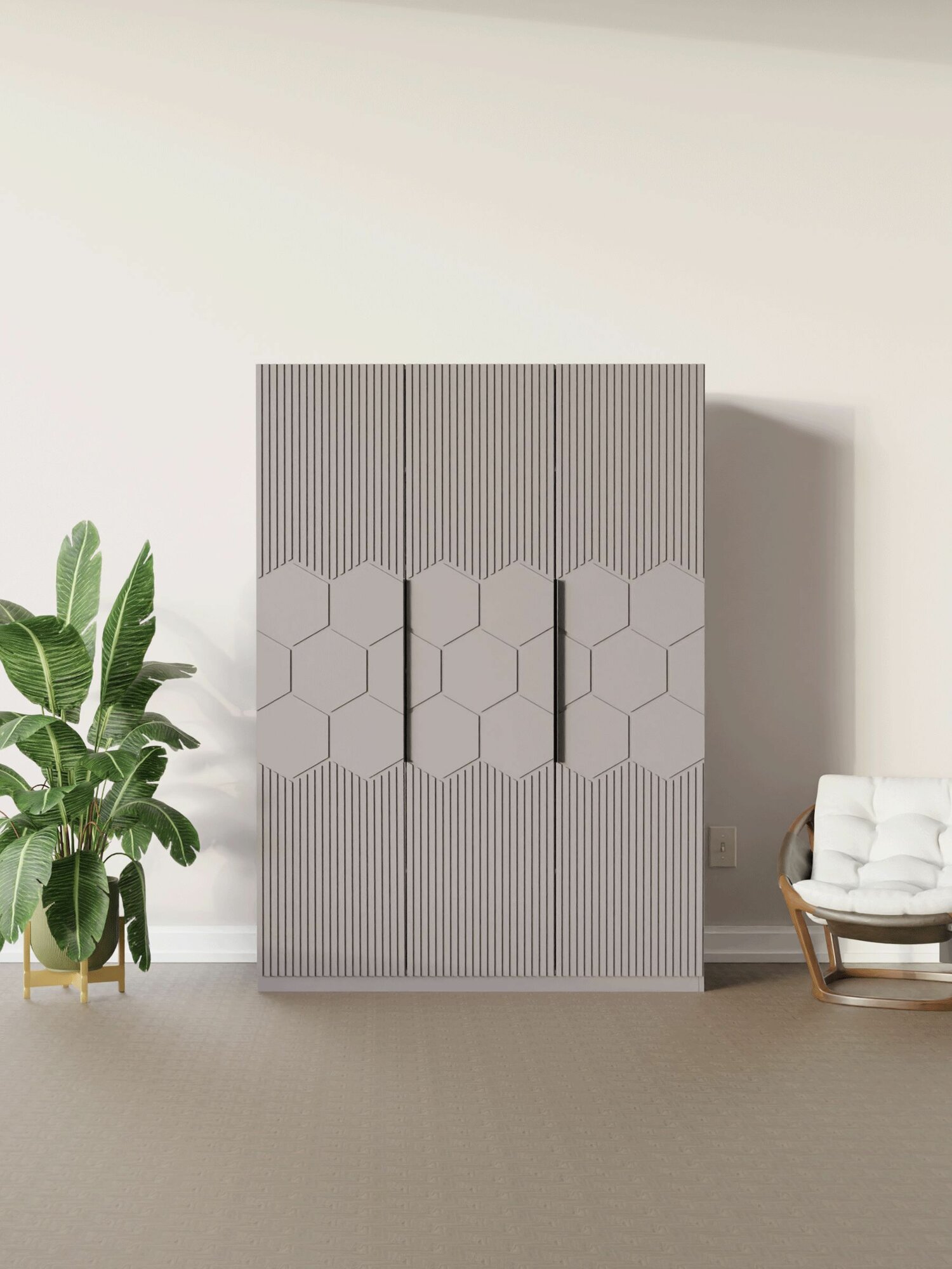 LAERA Шкаф для одежды распашной с полками трехдверный соты белый