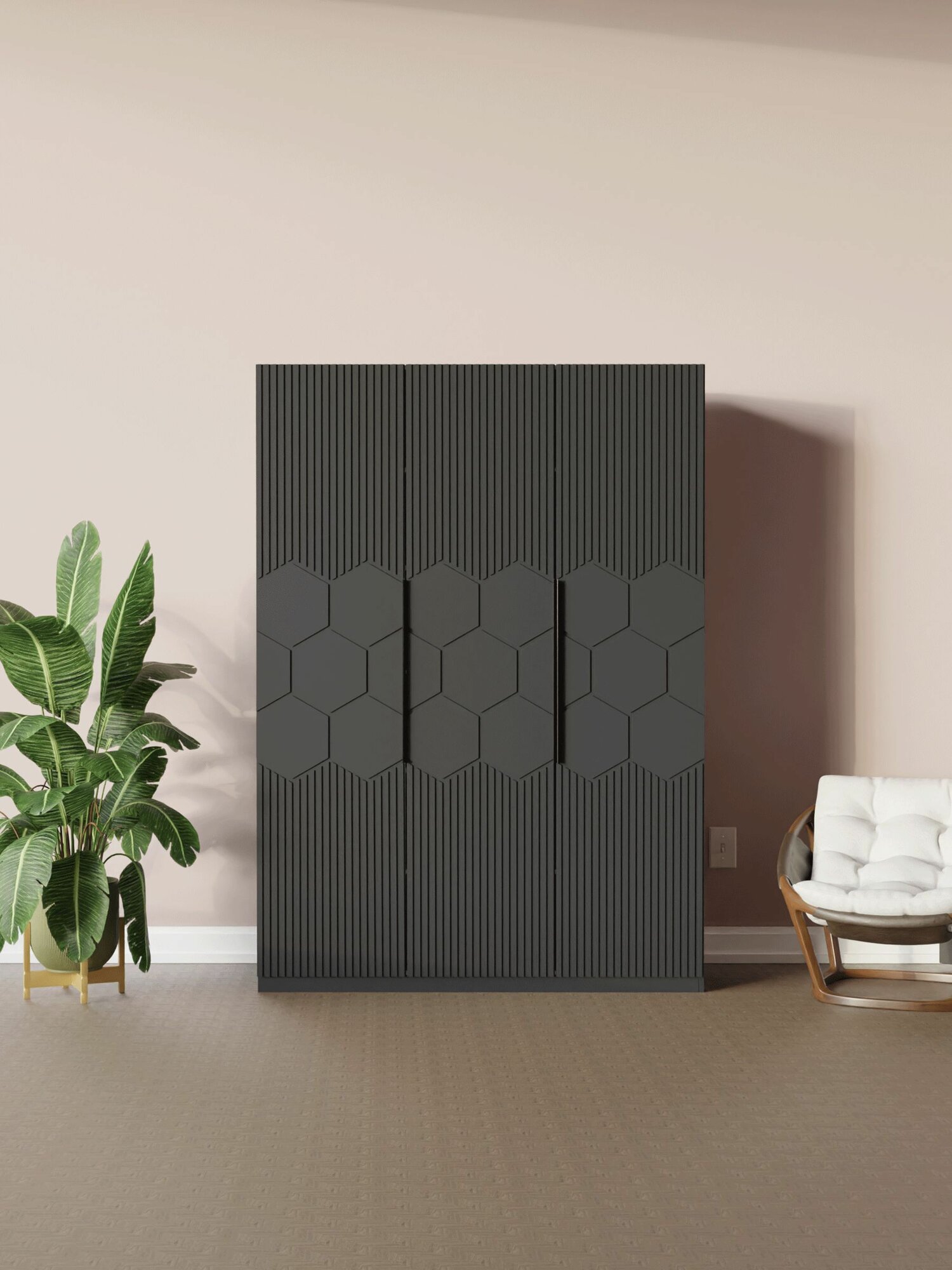 СохранитьLAERA Шкаф для одежды распашной с полками соты графит интересное: