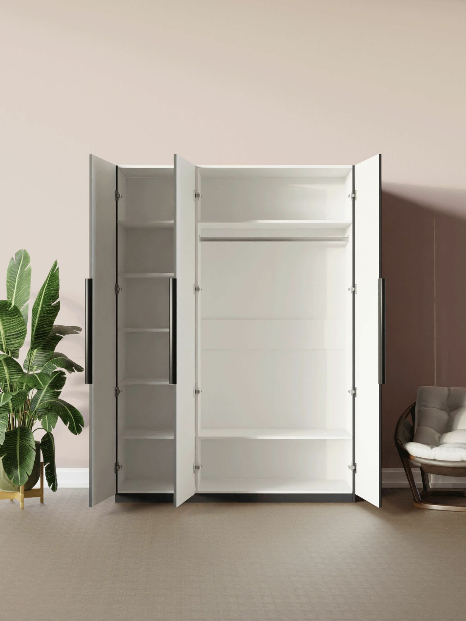 LAERA Шкаф для одежды распашной четырехдверный с полками графит соты