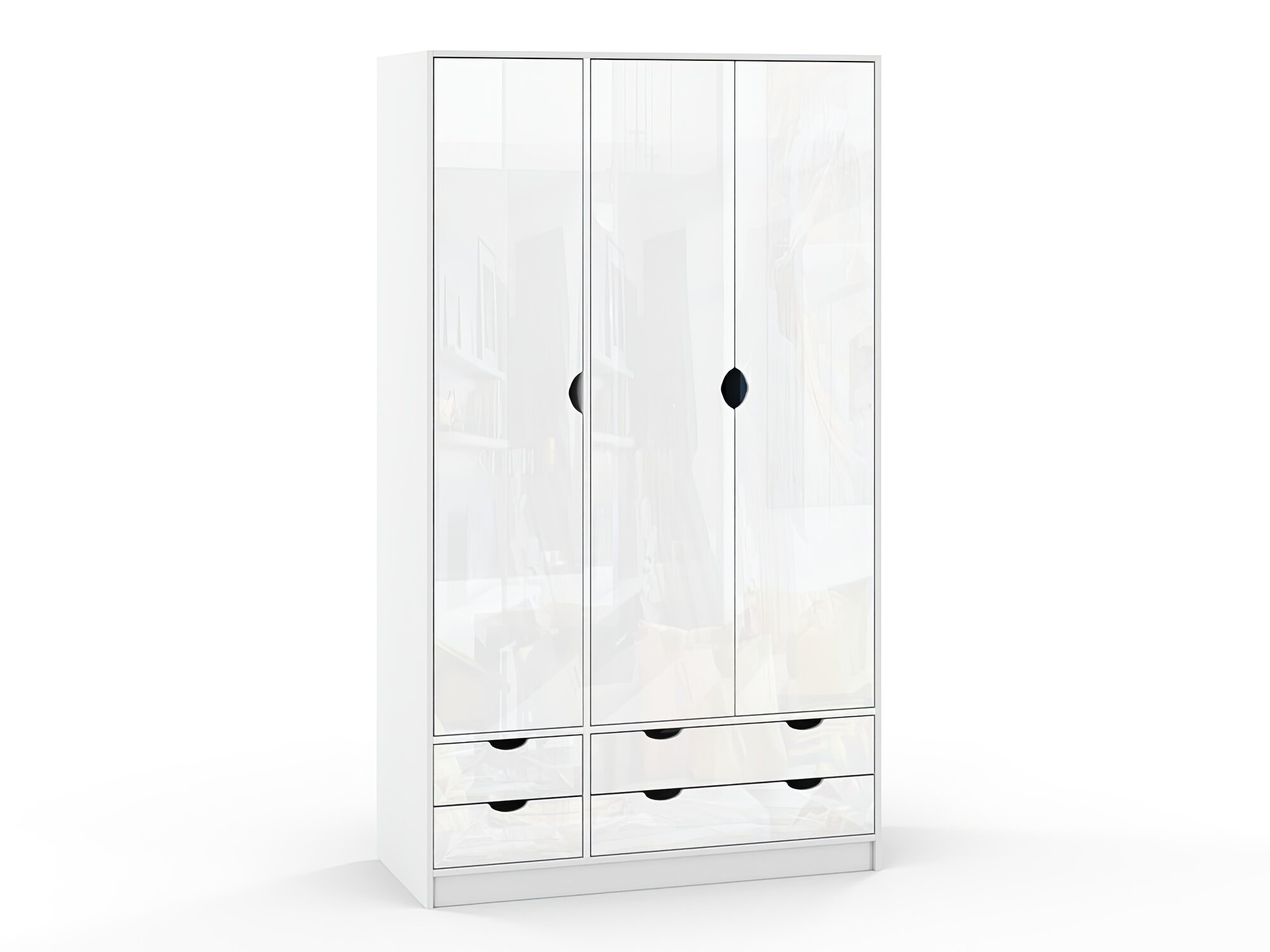 Grand Лаворо 6 Шкаф трёхстворчатый распашной, 120х180х55 см (Белый/Белый глянец), с ящиками, со штангой