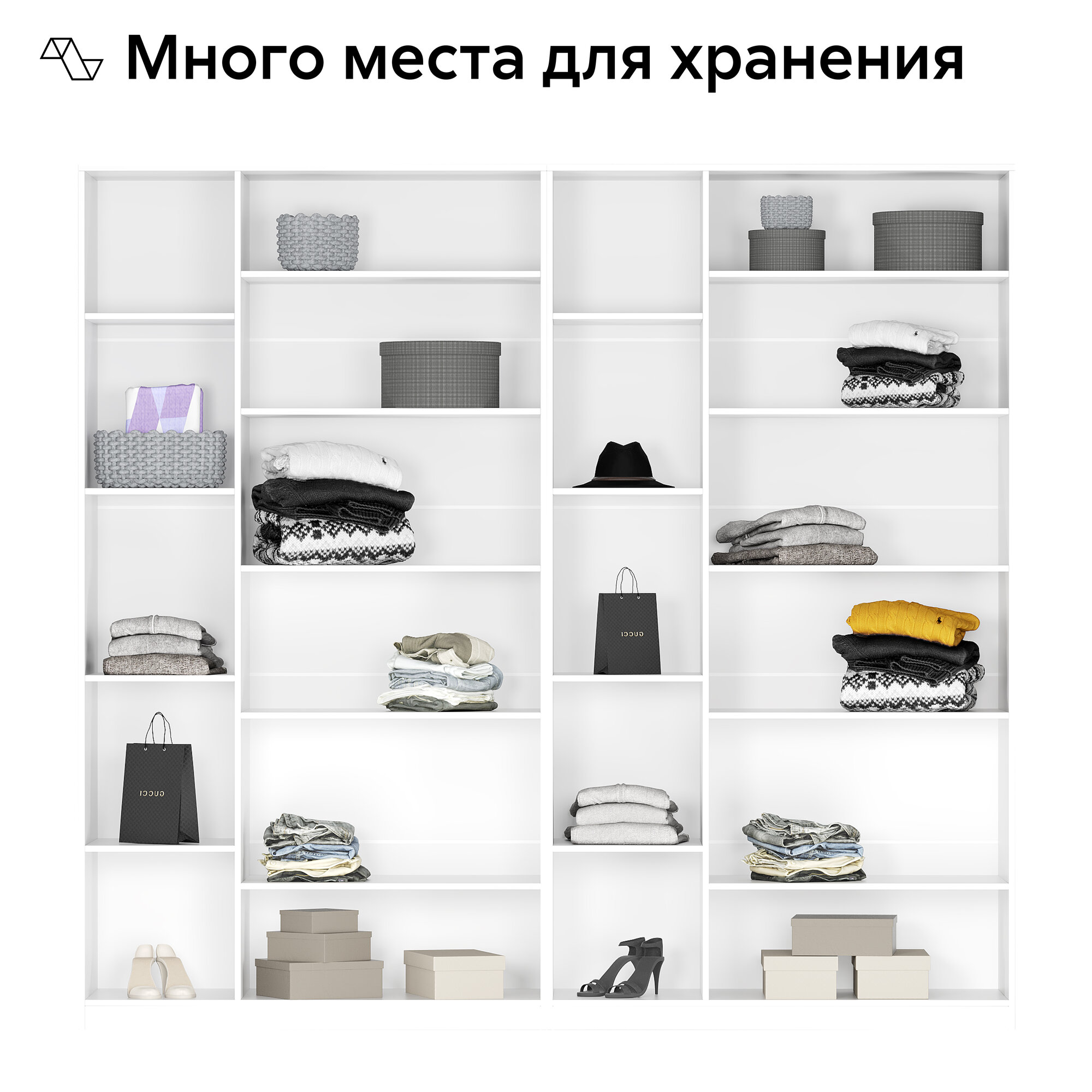 Шкафы для одежды Нонтон Луас, 18 полок, белый текстурный, 240 см интересное: