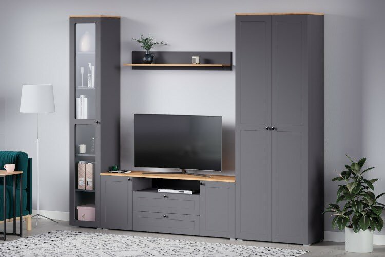 СохранитьШкаф с полками 2 двери Остин 16.307 графит/ дуб крафт размер 80х41,8х229,8 см. Моби интересное: