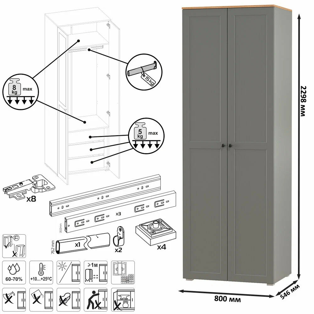 Шкаф 2х дверный со штангой Остин 13.224 цвет серый графит/дуб крафт золотой, ШхГхВ 84х54,3х229,6 см.