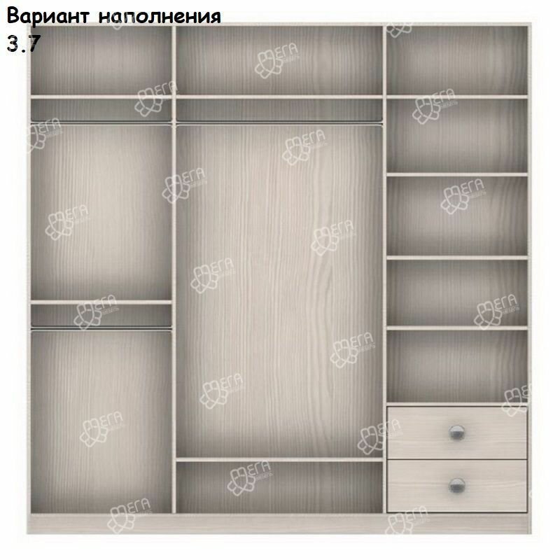 Шкаф-купе Амадеус-33 для одежды с зеркалом трехдверный 190*250*50 Мегамебель