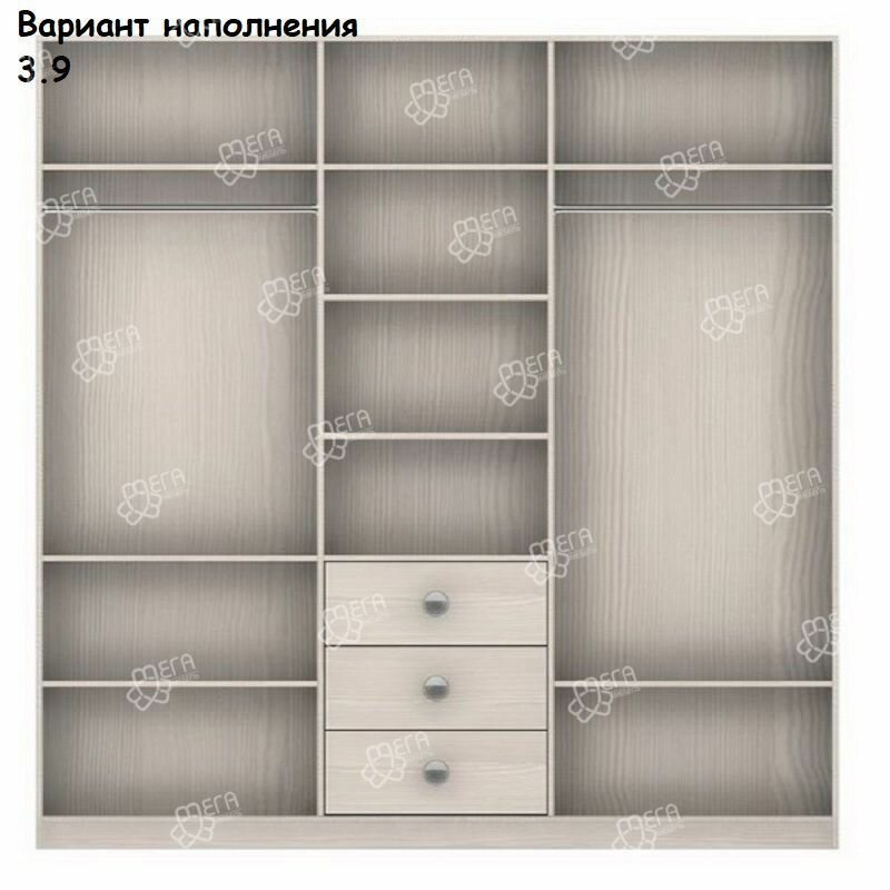Шкаф-купе Амадеус-33 для одежды с зеркалом трехдверный 190*250*50 Мегамебель