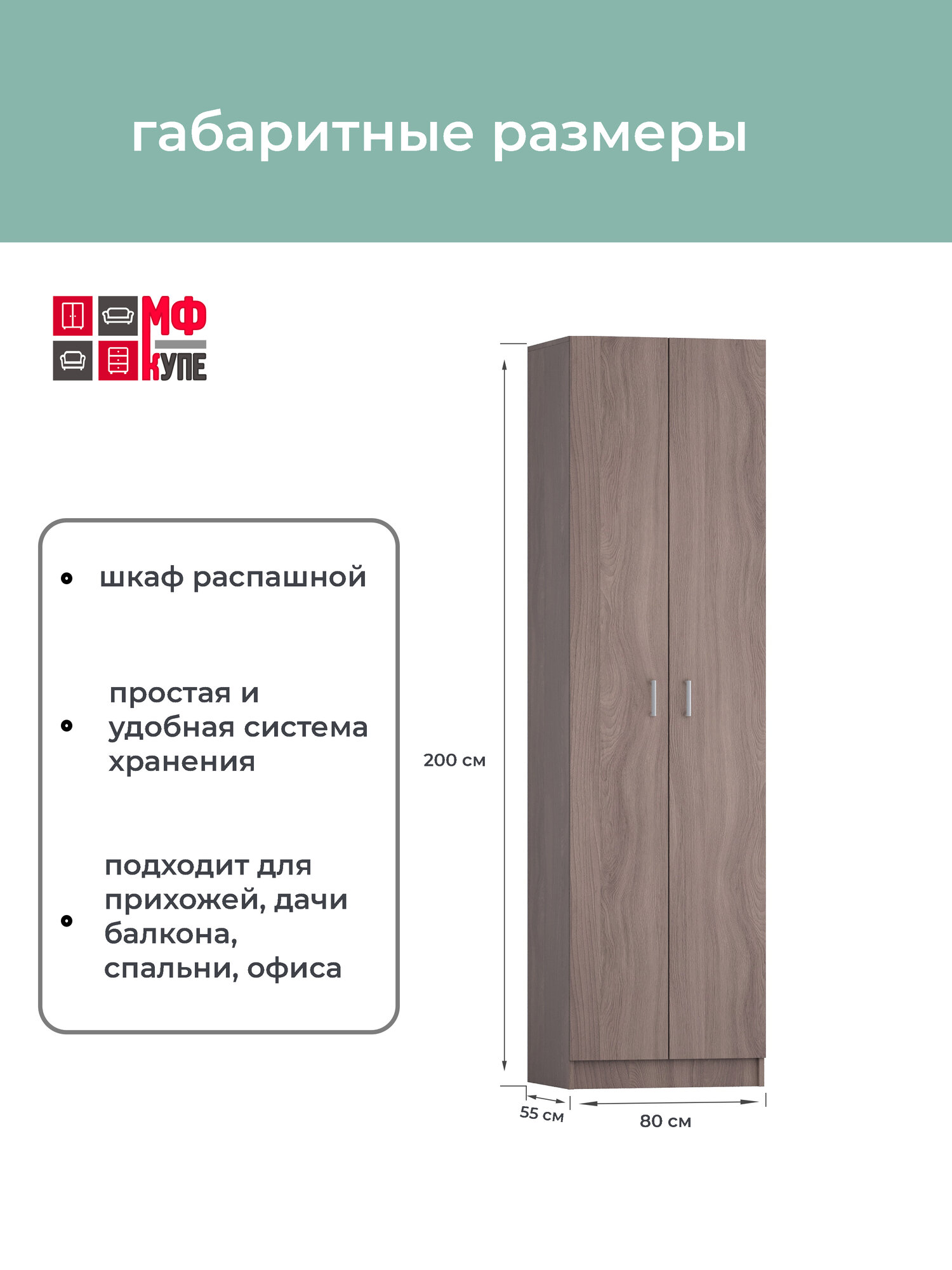 Шкаф двухдверный распашной, Далия эконом 2 800-550-2200, цвет Дуб сонома наполнение белье