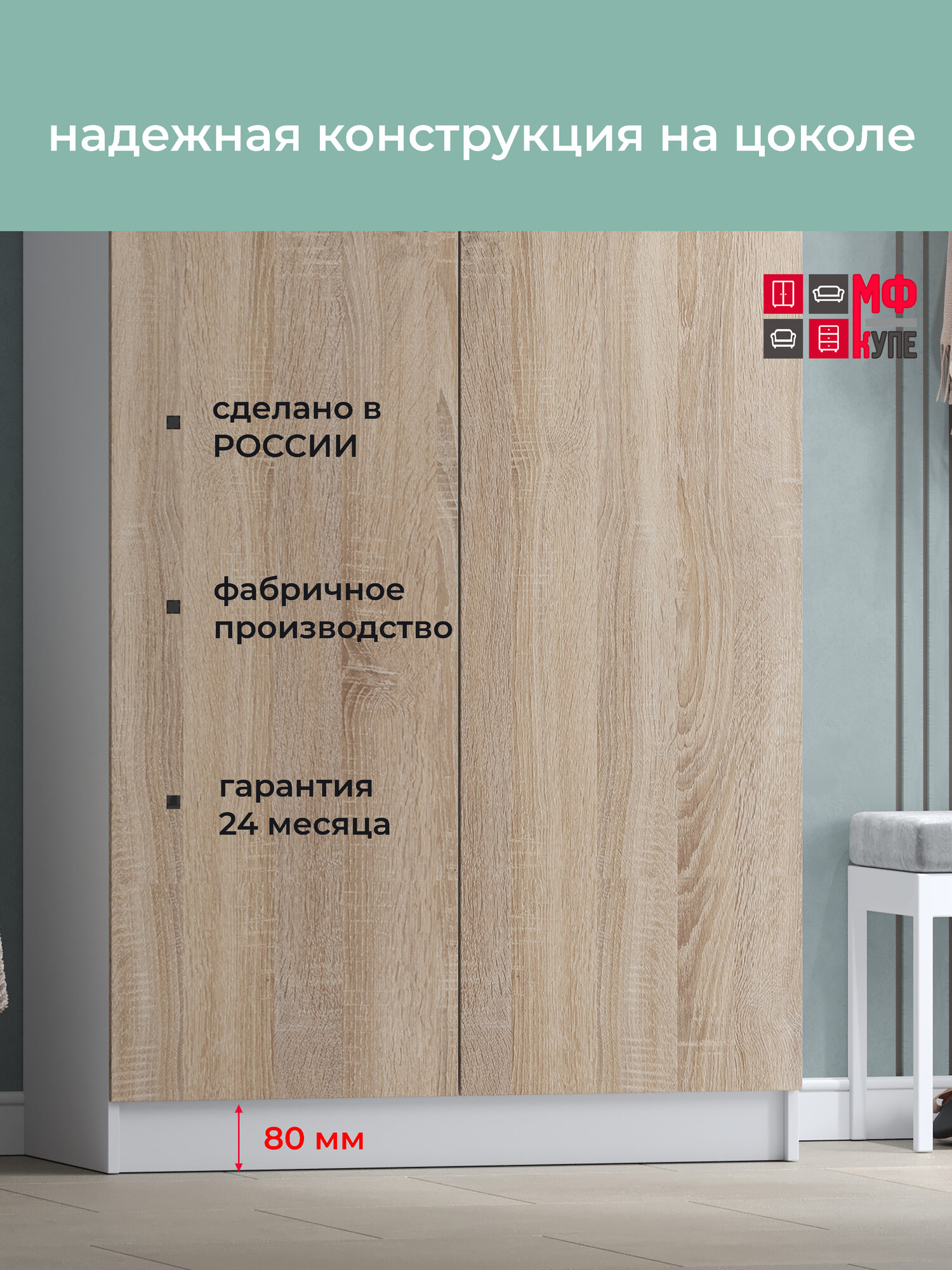 Шкаф двухдверный распашной, Далия эконом 2 800-550-2200, цвет Белый-Дуб сонома наполнение белье
