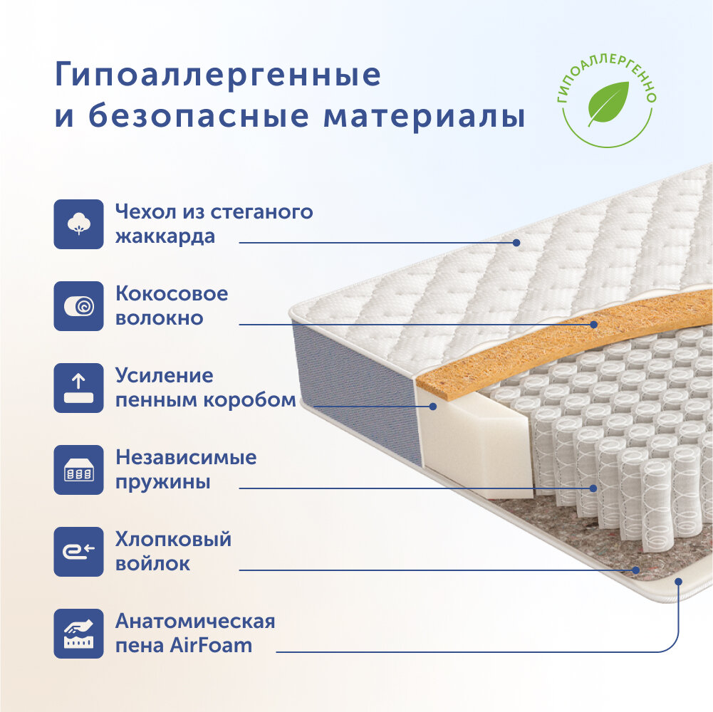 Матрас детский buyson BuyLuck 200x80 см, двусторонний, независимые пружины интересное:
