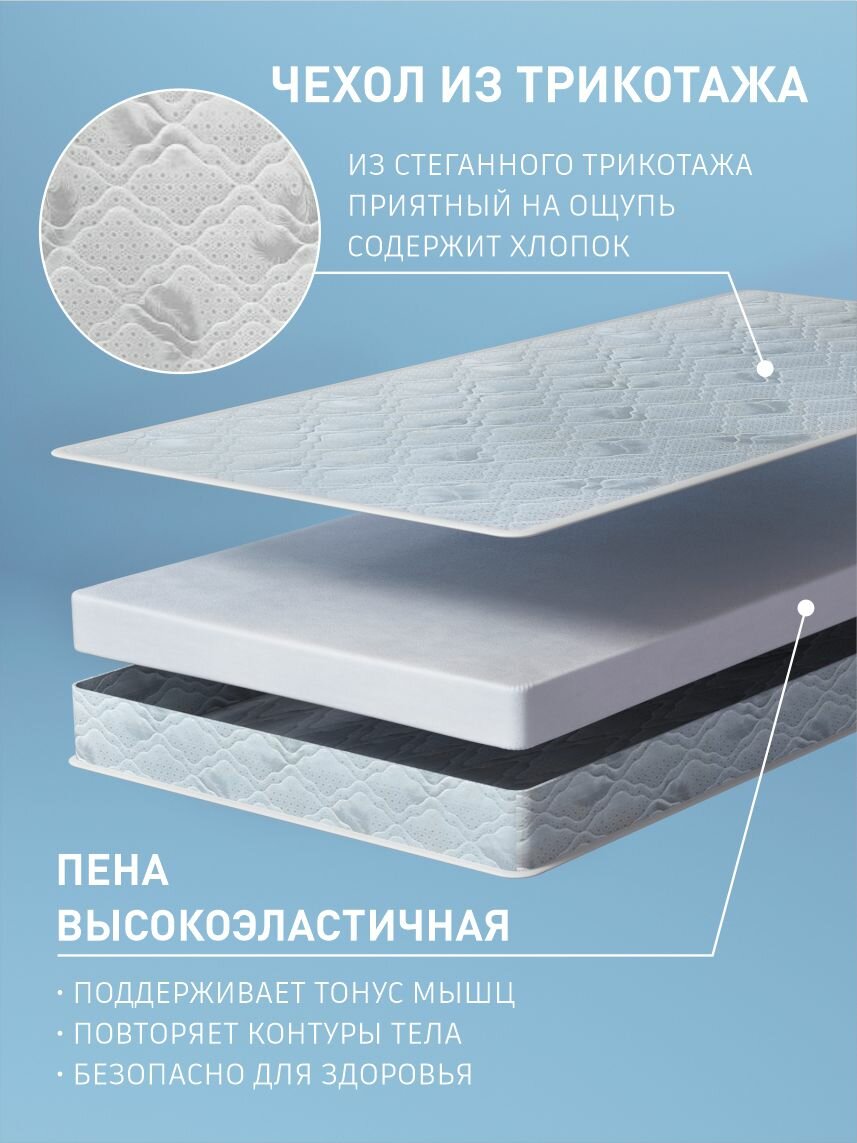 Ортопедический матрас 160 х 80 см, однослойный/беспружинный, ППУ 10см