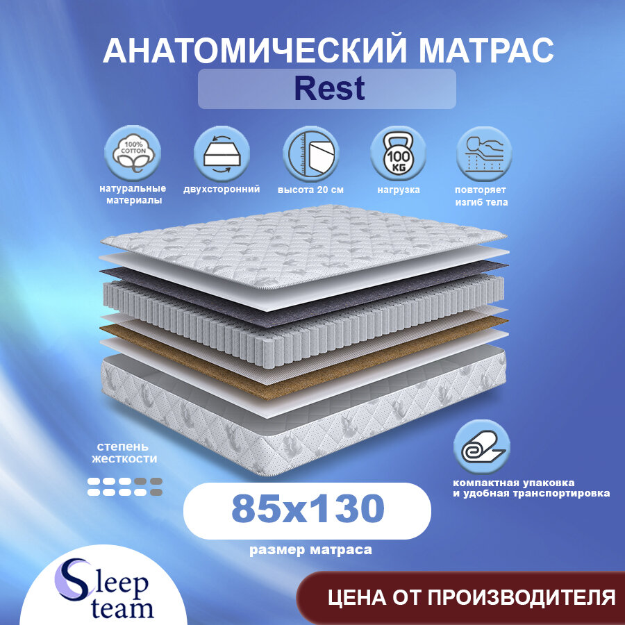 СохранитьМатрас детский пружинный SleepTeam Rest 85х130, с независимыми пружинами, высота 20 см, односпальный интересное: