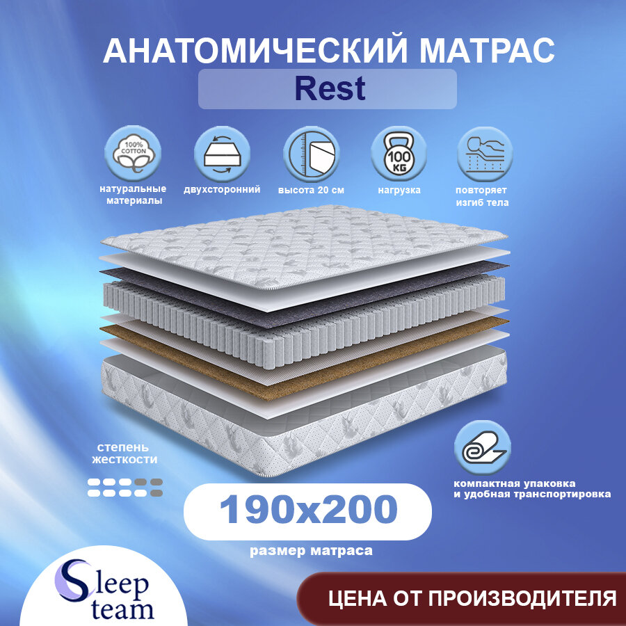 Купить Матрас пружинный SleepTeam Rest 190х200, с независимыми пружинами, высота 20 см, двуспальный