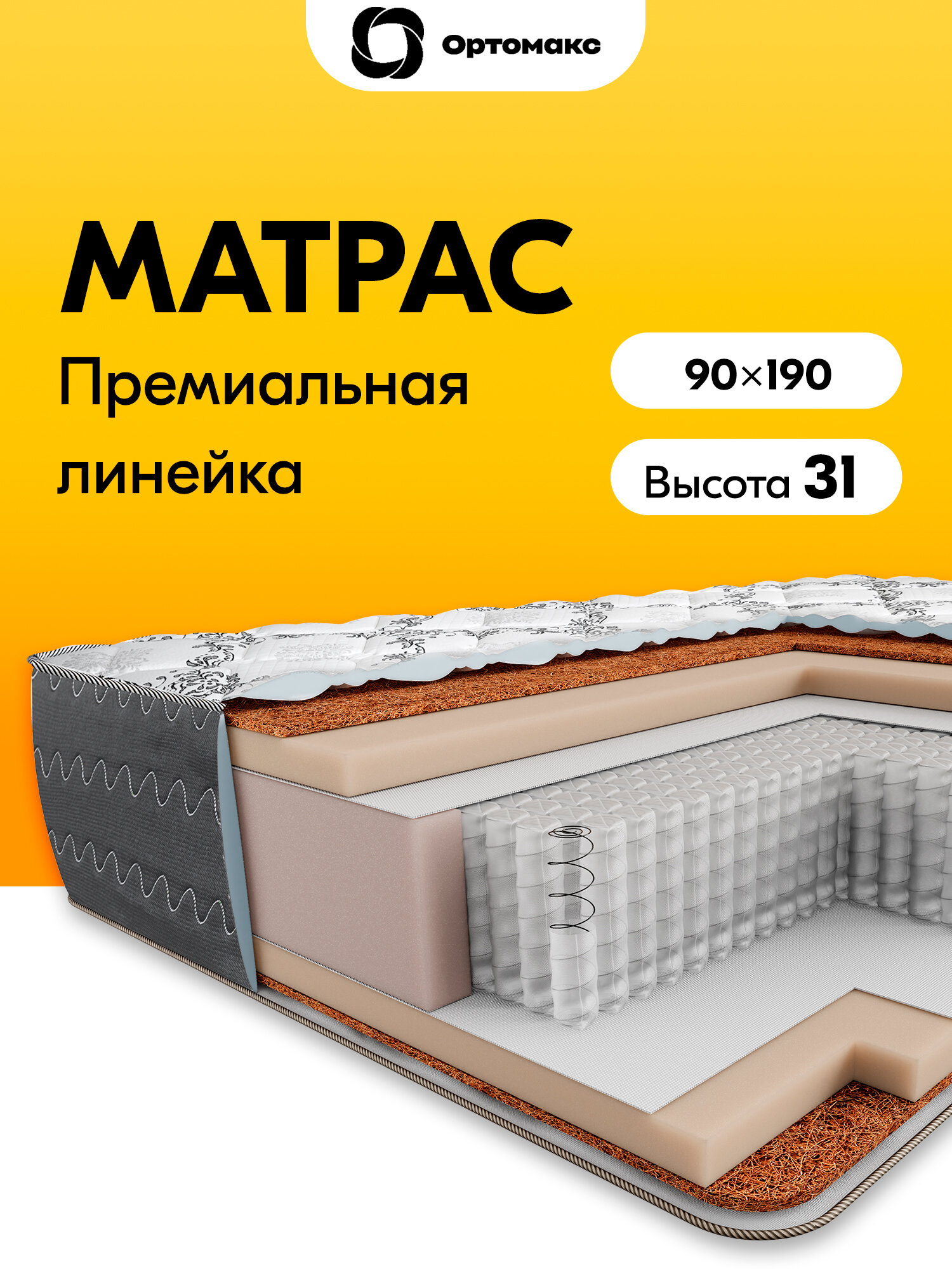 Купить Премиальный матрас 90х190 ортопедический пружинный средней жесткости Ortomax Grand De Luxe, для односпальной кровати