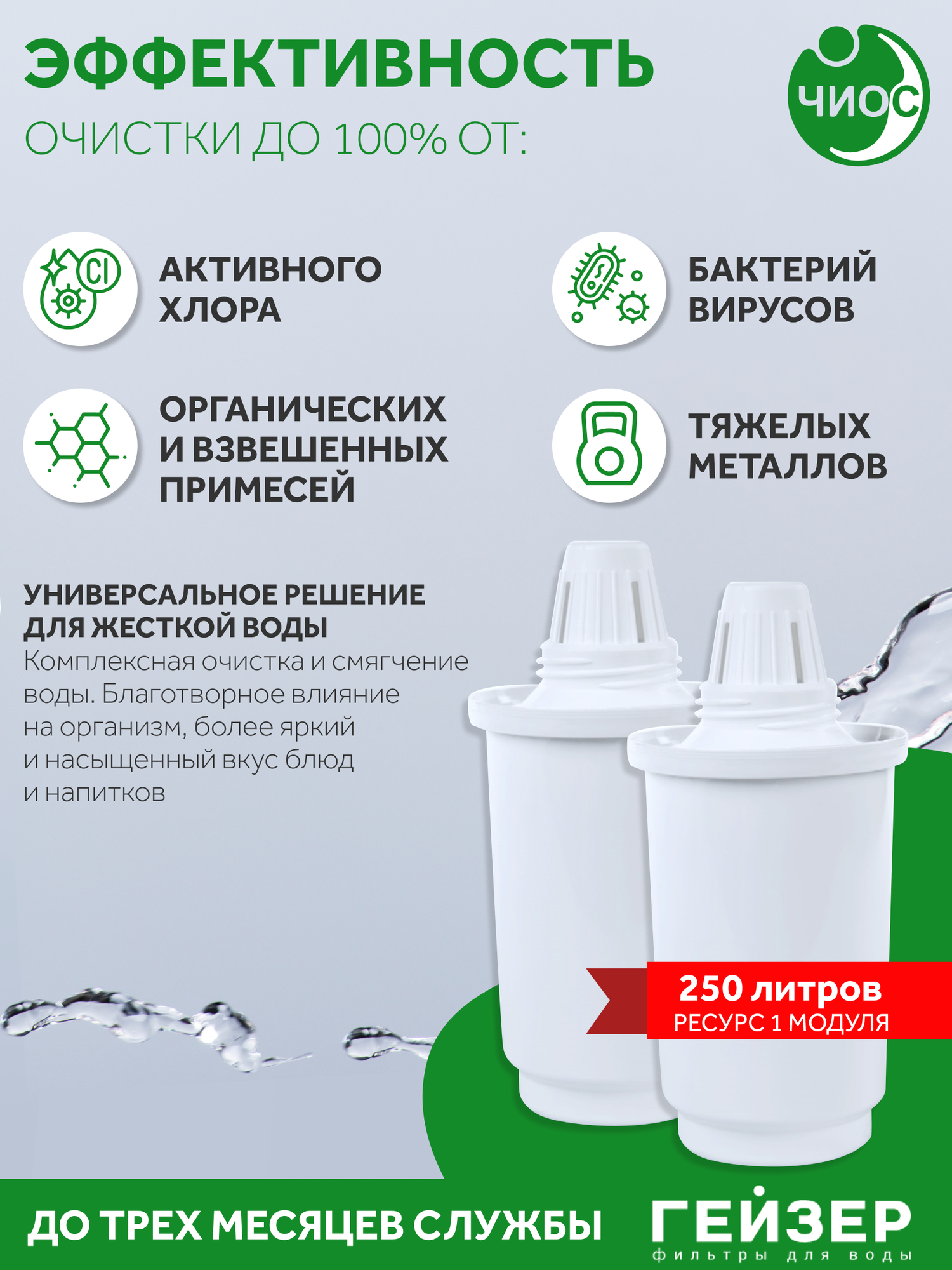 фильтрация ГЕЙЗЕР сменный фильтрующий модуль для фильтров-кувшинов Гейзер 302 д/жесткой воды 30508 ЛОТ 2 шт