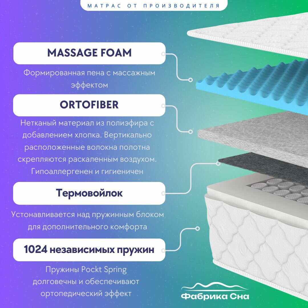 Фабрика Сна Матрас Relax Massage, независимые пружины, пена с массажным эффектом, средняя жесткость, анатомический, 180х190 см