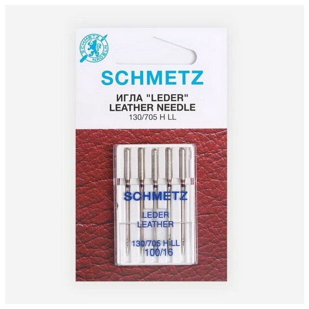 Игла/иглы Schmetz Leather 130/705 H LL 100/16, серебристый, 5 шт.