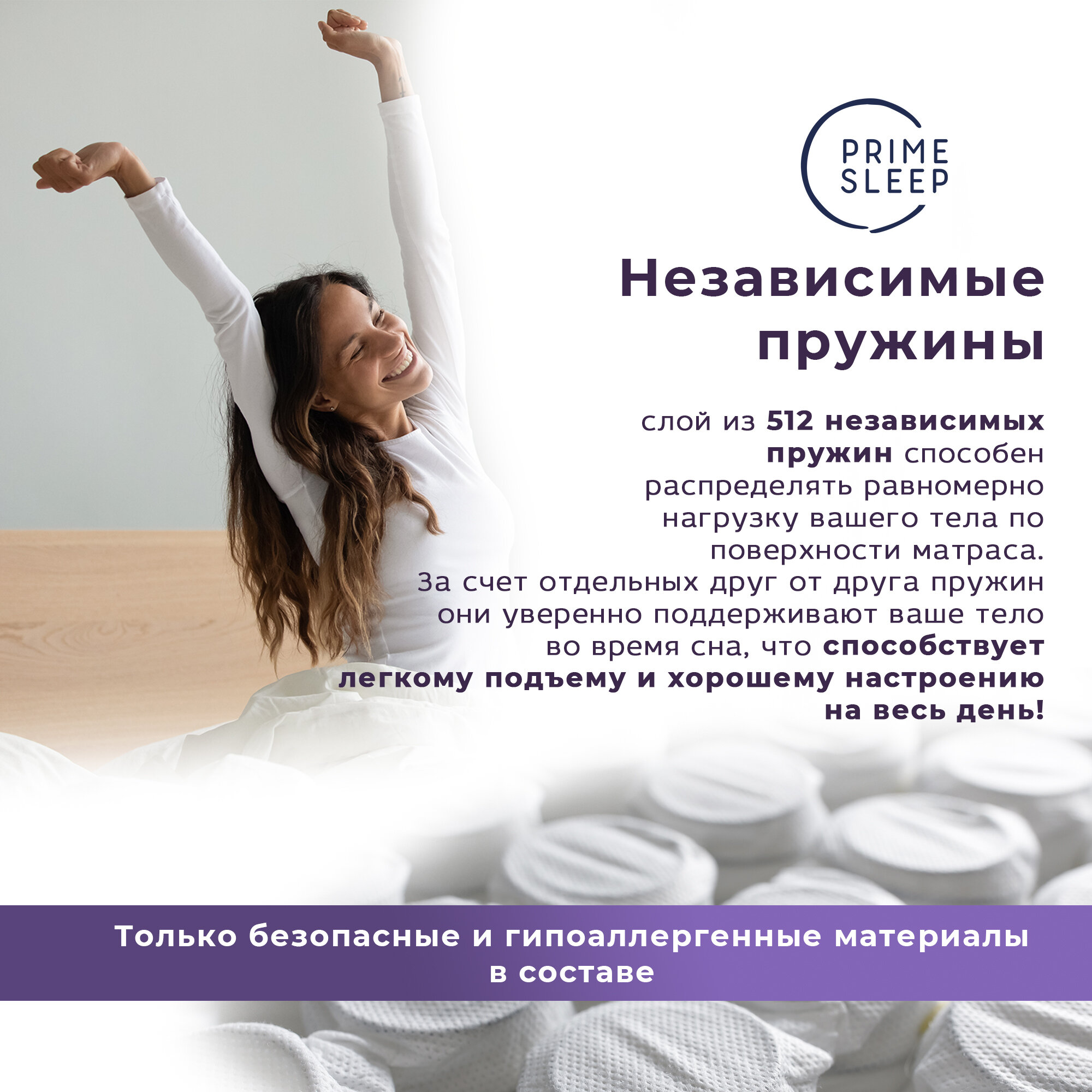 Матрас Prime Sleep Finest Libero 200х200, ортопедический, независимые пружины, разная жёсткость сторон