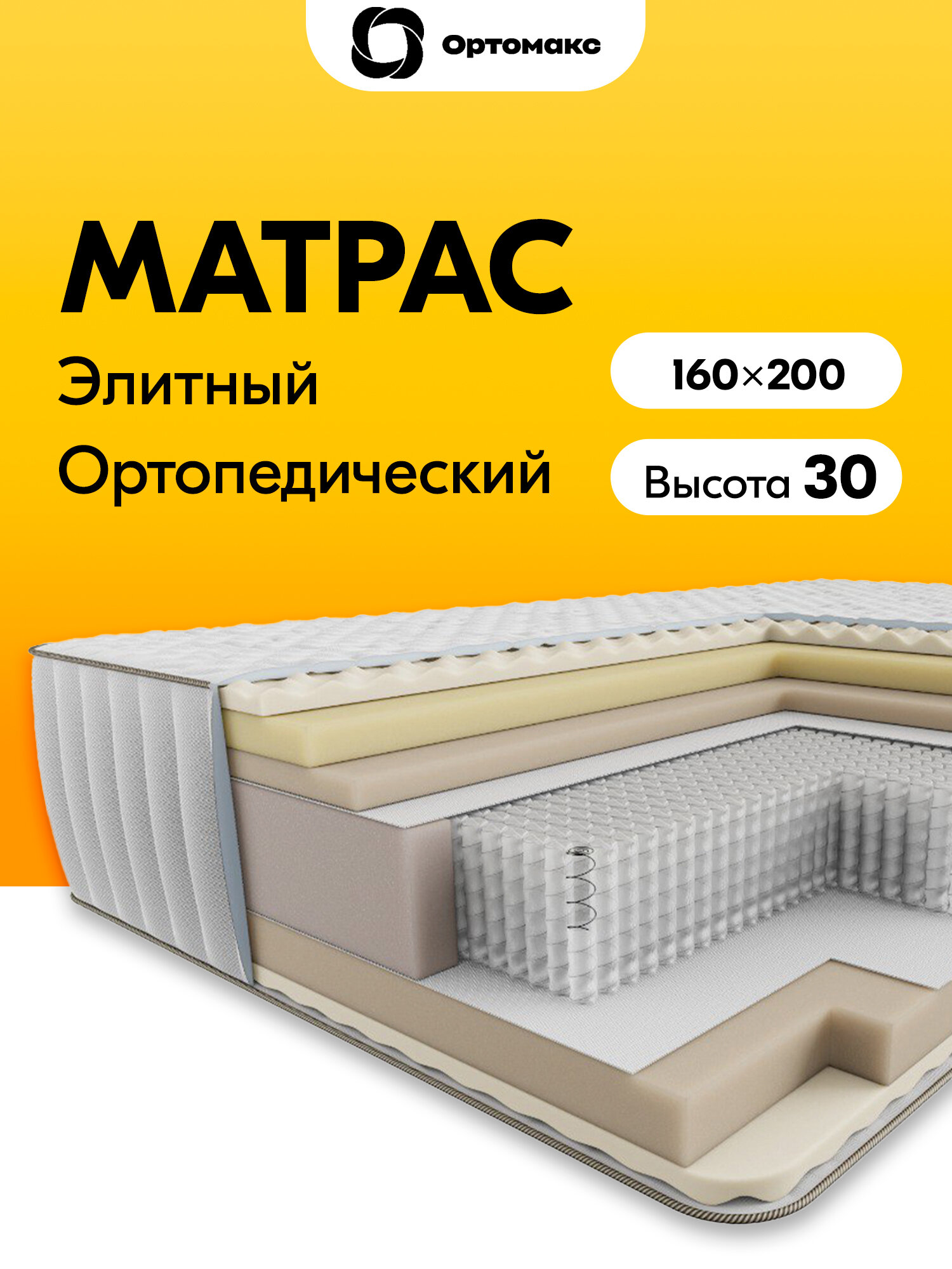 Купить Элитный матрас 160х200х30 ортопедический с эффектом памяти формы высота 30 см Ortomax Memory Top 29 S2000 двуспальный