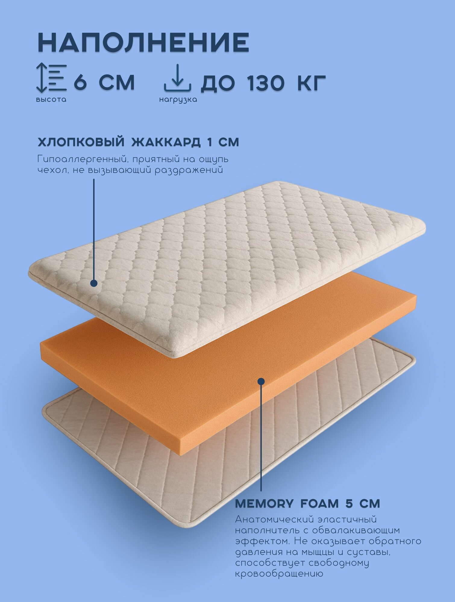 Наматрасник-топпер из пены мемори, 80х205, Ортис, эффект памяти, эффект расслабления
