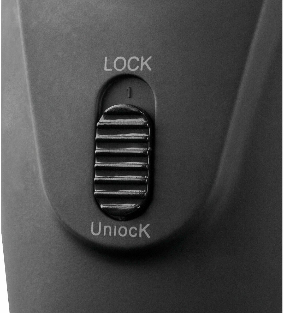 Стильный яркий дизайн машинки, эргономичный удобный корпус, лезвия выполнены из нержавеющей стали, автономная работа, гребень на шесть позиций с возможностью блокировки положения