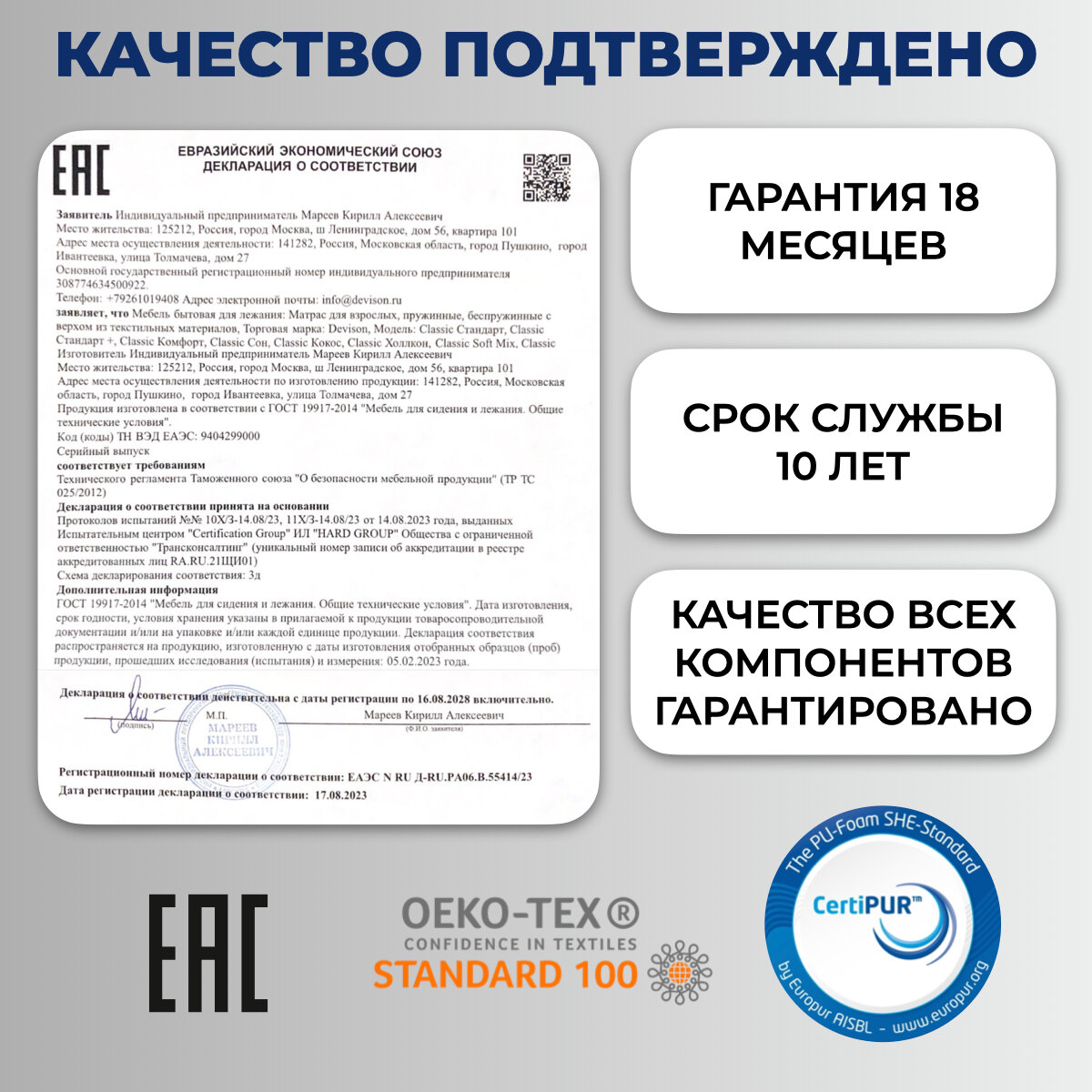 Ниже Вы можете прочитать отзывы на Матрас 140х200 ортопедический пружинный для двуспальной кровати Devison Kombi Support высота 21 см, ознакомится с подробными характеристиками, посмотреть интересные обзоры и фотографии на Матрас 140х200 ортопедический пружинный для двуспальной кровати Devison Kombi Support высота 21 см.