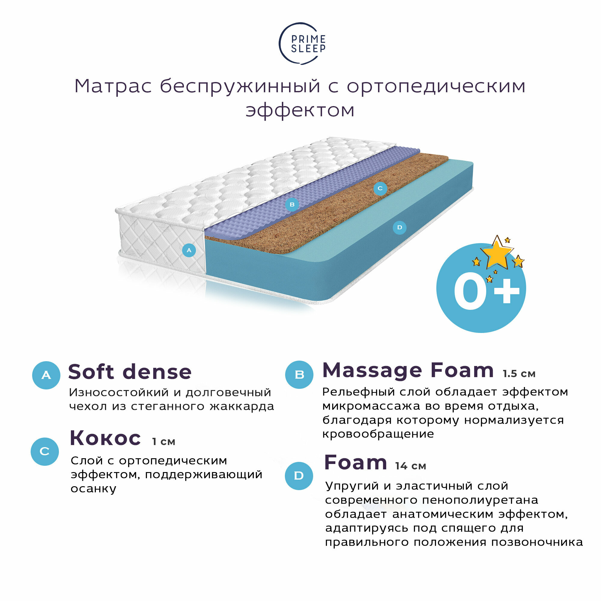 Купить Матрас Prime Sleep Foam Cuore 130х200, ортопедический, беспружинный, эффект массажа, разная жесткость сторон